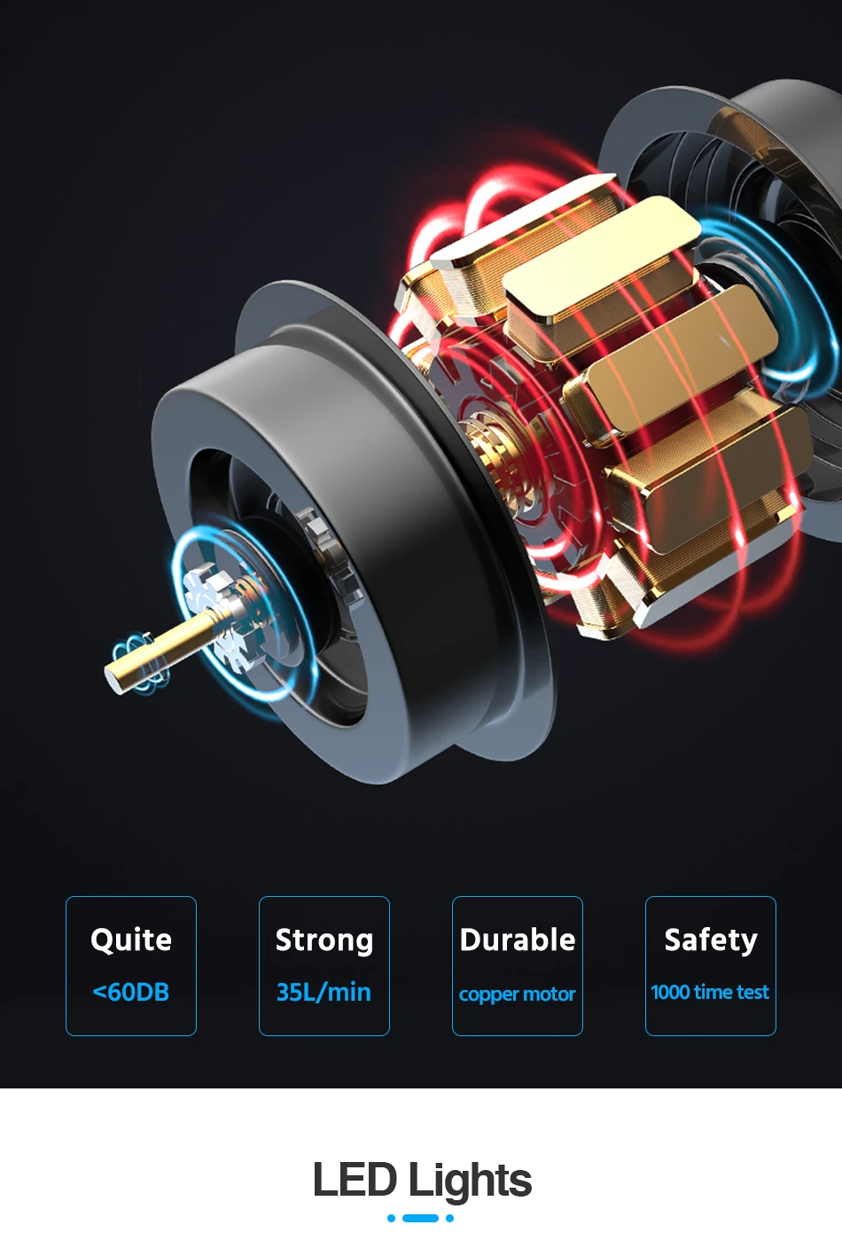 ● Использование в ночное время: Встроенный светодиодный светильник, который может включаться автоматически, а задний Дисплей делает мини-компрессор простым в использовании даже ночью.