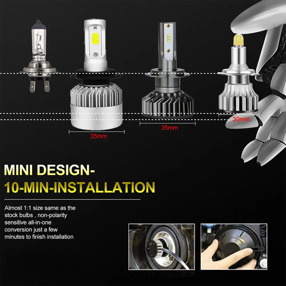 * Компактный макет светодиодных чипов, полное 3D строгое моделирование традиционного позиционирования нити без каких-либо модификаций лампы, вы можете эффективно контролировать блики, возможно, устраняет опасность. В соответствии с галогенными лампами система позиционирования, точечный светильник источников и один и тот же ламповый патрон высот.