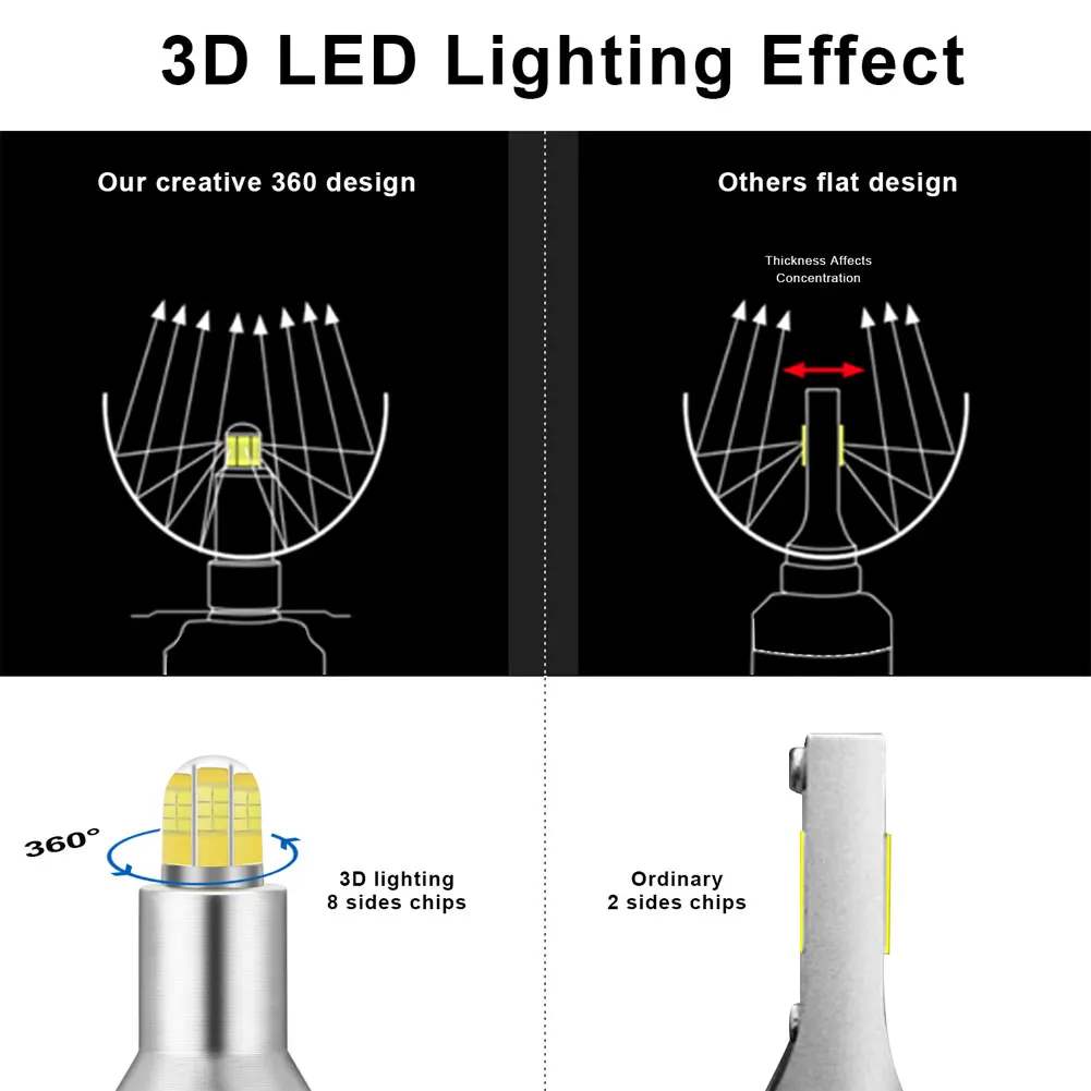 2 шт. Автомобильный светодиодный H7 3D светодиодный фары высокой мощности 360 градусов Лампа дальнего или ближнего света 8 сторон