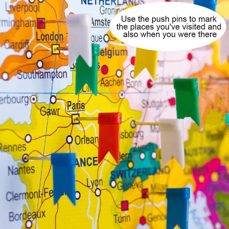 Широкий спектр использования: эти карты идеально подходят для использования дома, в офисе, в школе. Используется на пробковых досках, картах путешествий, пенопластовых досках, досках объявлений и т. д. не рекомендуется использовать на цементной стене.
