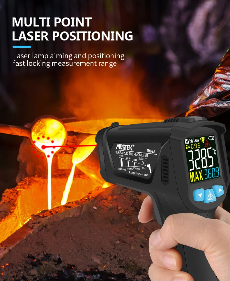 IR02C:-50 ~ 800C, функция термопары, температура окружающей среды влажность, точка росы, измерение плесени