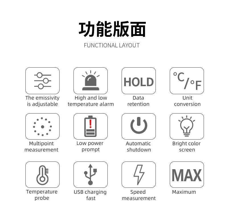 IR01C:-50 ~ 550C, температура окружающей среды:-10 ~ 60C, влажность окружающей среды: 0% ~ 100% RH