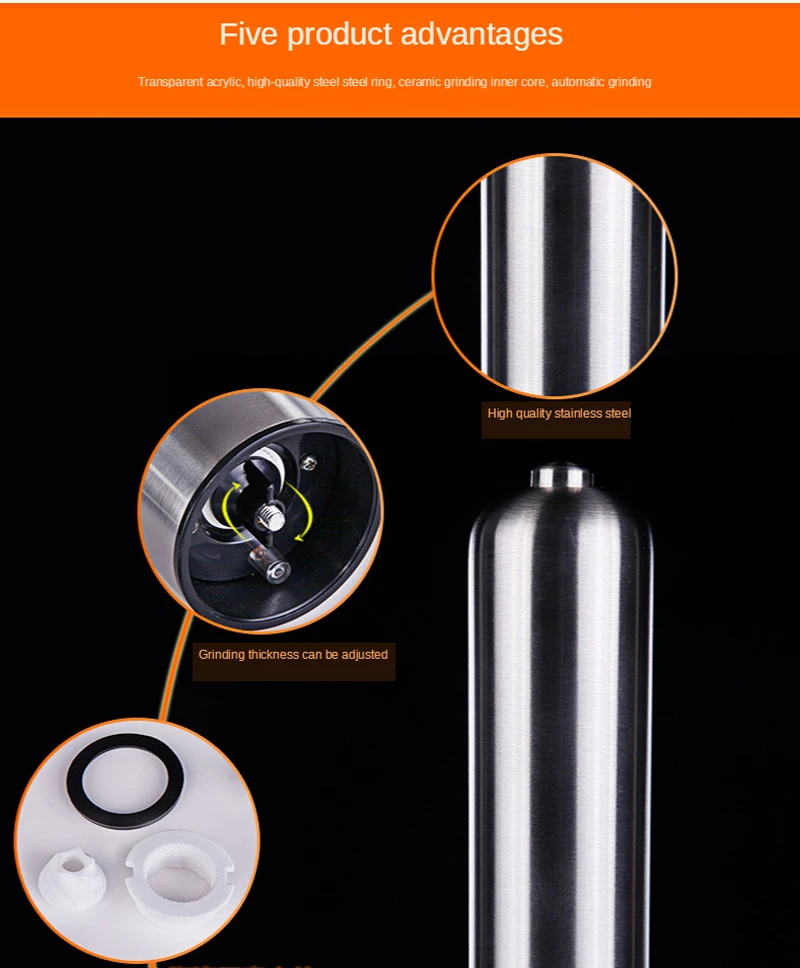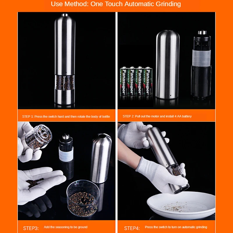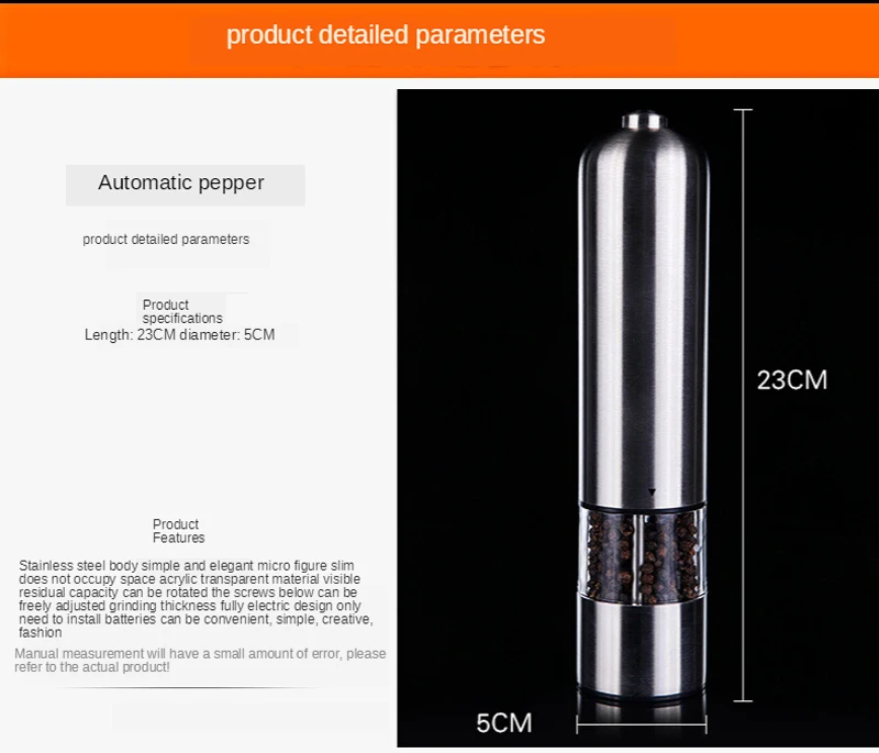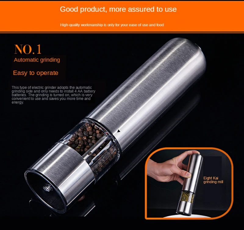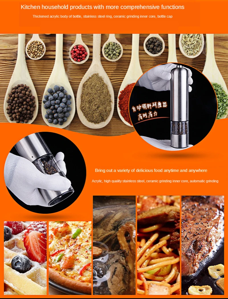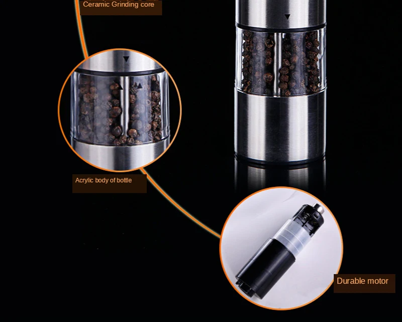 Нержавеющая электрическая мельница для перца автоматическая мельница для перца из нержавеющей стали светодиодный светильник шейкер для соли и перца мельница для специй