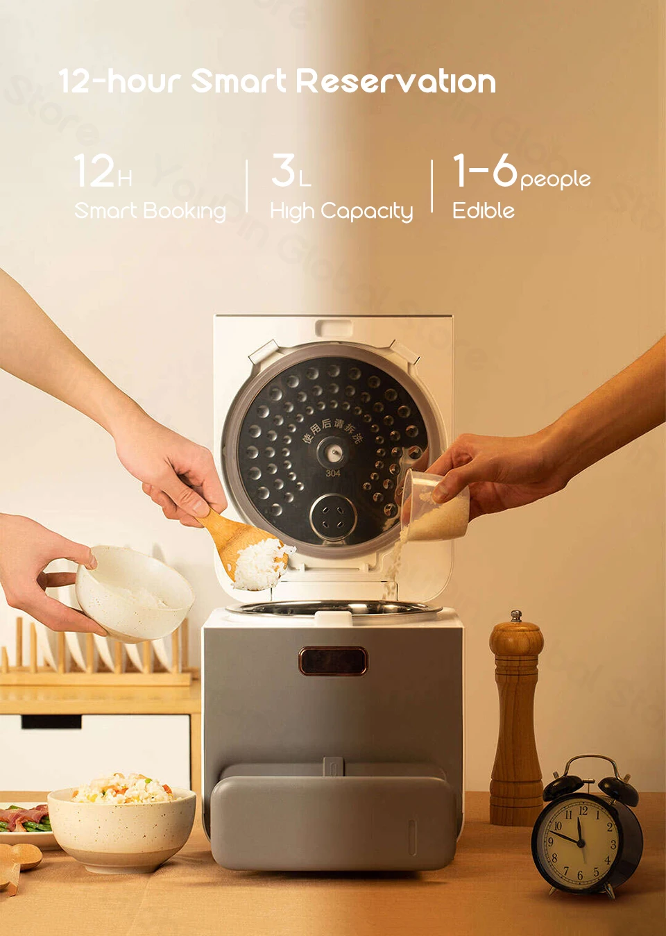 ------ Он может быть готово, чтобы начать приготовления пищи в то время, когда вы хотите. В нем можно готовить рис для девочек возрастом от 1 до 6 человек. ------