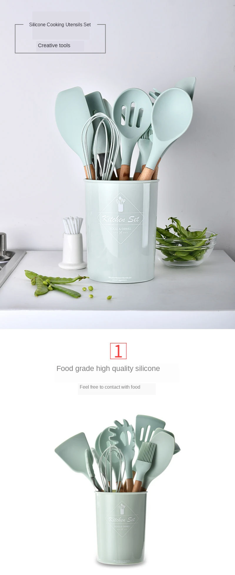 Силиконовые Пособия по кулинарии посуда набор 9/10/12 шт антипригарный нож Шпатель лопата с деревянной ручкой Пособия по кулинарии Набор инструментов с ящиком для хранения Кухня инструменты