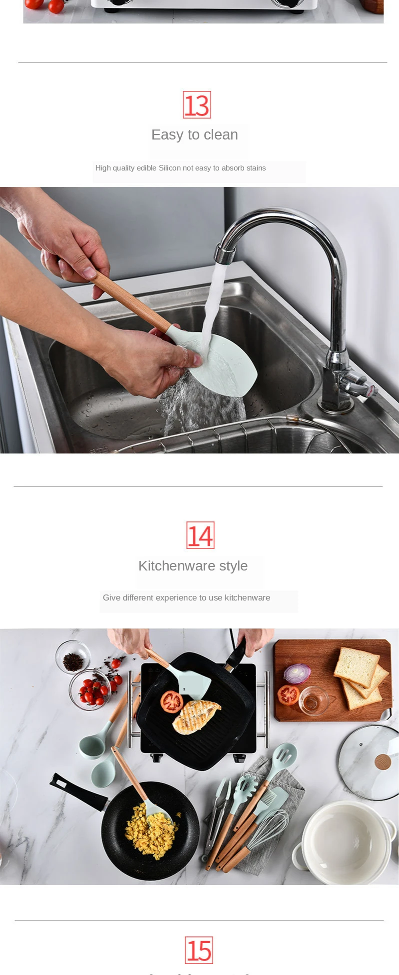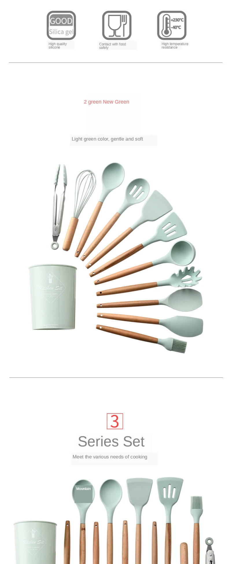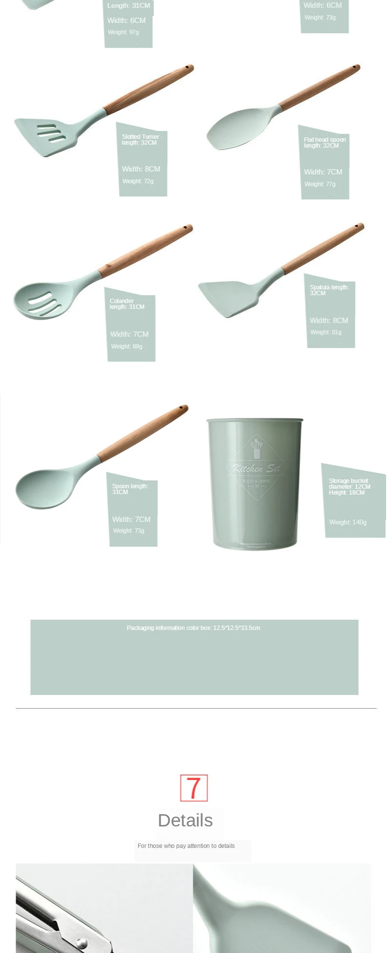 Особенности: Защита окружающей среды, нетоксичный, термостойкий, антипригарный, прочный, безопасный, легко чистится продукты для кухонной посуды Подходит: микроволновая печь, тостер, пароварка, можно варить и стерилизовать. Материал: силикон + дерево из натуральной акации Цвет: зеленый, серый, розовый, мятно-зеленый, красный Размер: как на фото Набор силиконовой посуды-кухонный помощник, идеально подходит для всех видов продуктов и кухонных принадлежностей, жарки, перемешивания крема, масла, мороженого и т. д. Включает лопатку, щётку для протирания, шпатель с острым носком, Тернер с круглыми краями, ковш, токарь с прямыми краями, ложку, щипцы, Паста вилка и идеально подходит для всех типов продуктов и приготовления пищи. Примечание: 1. Светильник и различные дисплеи могут привести к тому, что цвет товара на картинке немного отличается от реального. Допускается погрешность в измерениях +/- 1-3 см. 2. Это нормально, что силиконовые продукты могут иметь некоторый запах, так как вулканизатор (своего рода катализатор, который играет важную роль в процессе формования) добавляется в сырье, чтобы сделать готовую продукцию более гибкой. Как правило, большая часть вулканизатора будет летучей после формирования, и остатки исчезнут в течение нескольких дней. (Вулканизатор не вредит здоровью людей) Небольшой наконечник для удаления запаха: Храните изделие в соленой воде около получаса, постирайте и высушите, запах исчезнет. 3. Силиконовая посуда с деревянными ручками не может использоваться в посудомоечных машинах. После волдырей, тепловое расширение и сжатие будут тяжелыми.