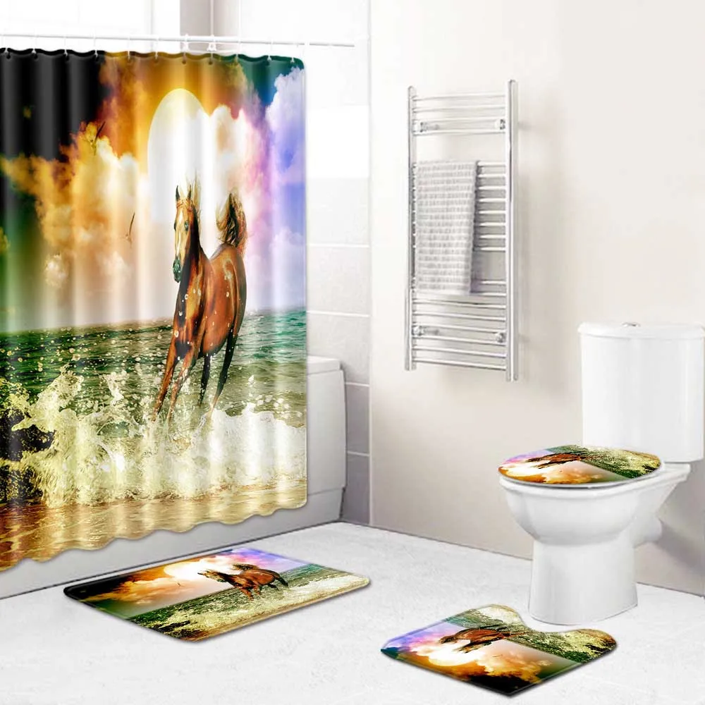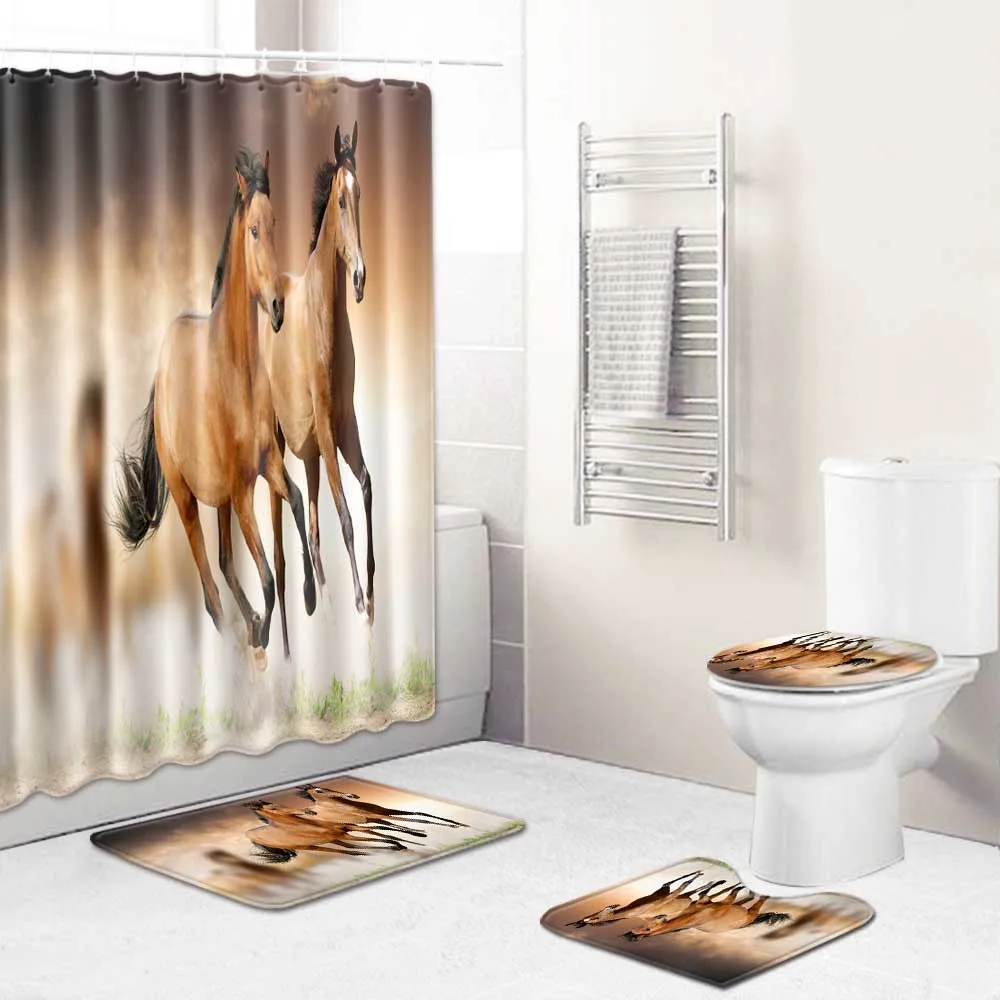 Ковбойские сапоги в стиле ретро West, водонепроницаемая тканевая занавеска для душа с лошадьми, винтажная Западная занавеска для ванной, для туалета, набор ковриков