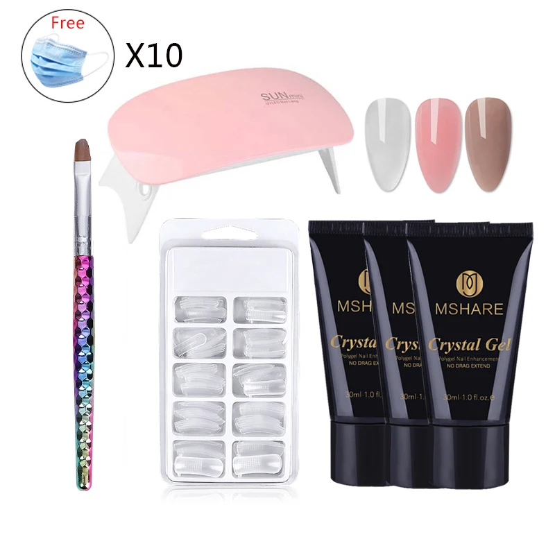 1. Используйте пилку для ногтей, чтобы потереть поверхность ногтя, а затем очистить ногти; 2. Нанесите тонкий слой базового геля, полимеризация светодиодной или УФ-лампой 30-60 с; 3. Выберите подходящие кончики для нанесения полигеля, используйте кисть для ногтей с раствором скольжения, чтобы сделать гель гладким; 4. Положите его к ногтю, отверждения с led или УФ-лампой 30-60s; 5. Снимите Кончики ногтей, обрежьте форму и отполируйте ногти; 6. Нанесите тонкий слой без протирания верхнего покрытия, отверждения с помощью светодиодной или УФ-лампы 30-60s;