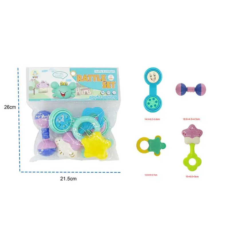Игрушка для новорожденных, детская От 0 до 1 года, Колокольчик для ребенка, головоломка, набор из 4 предметов, лучший подарок для ребенка, прорезыватель, ручная погремушка, Когнитивная