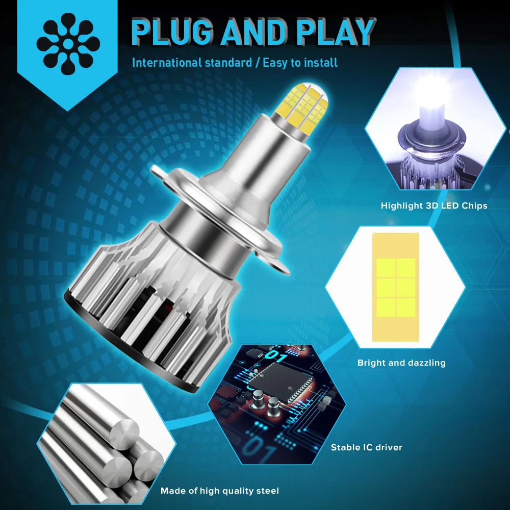 H1, H7, H11/H8/H9, 9005/HB3, 9006/HB4, 8 сторонних CSP 3D чипов/комплектов.