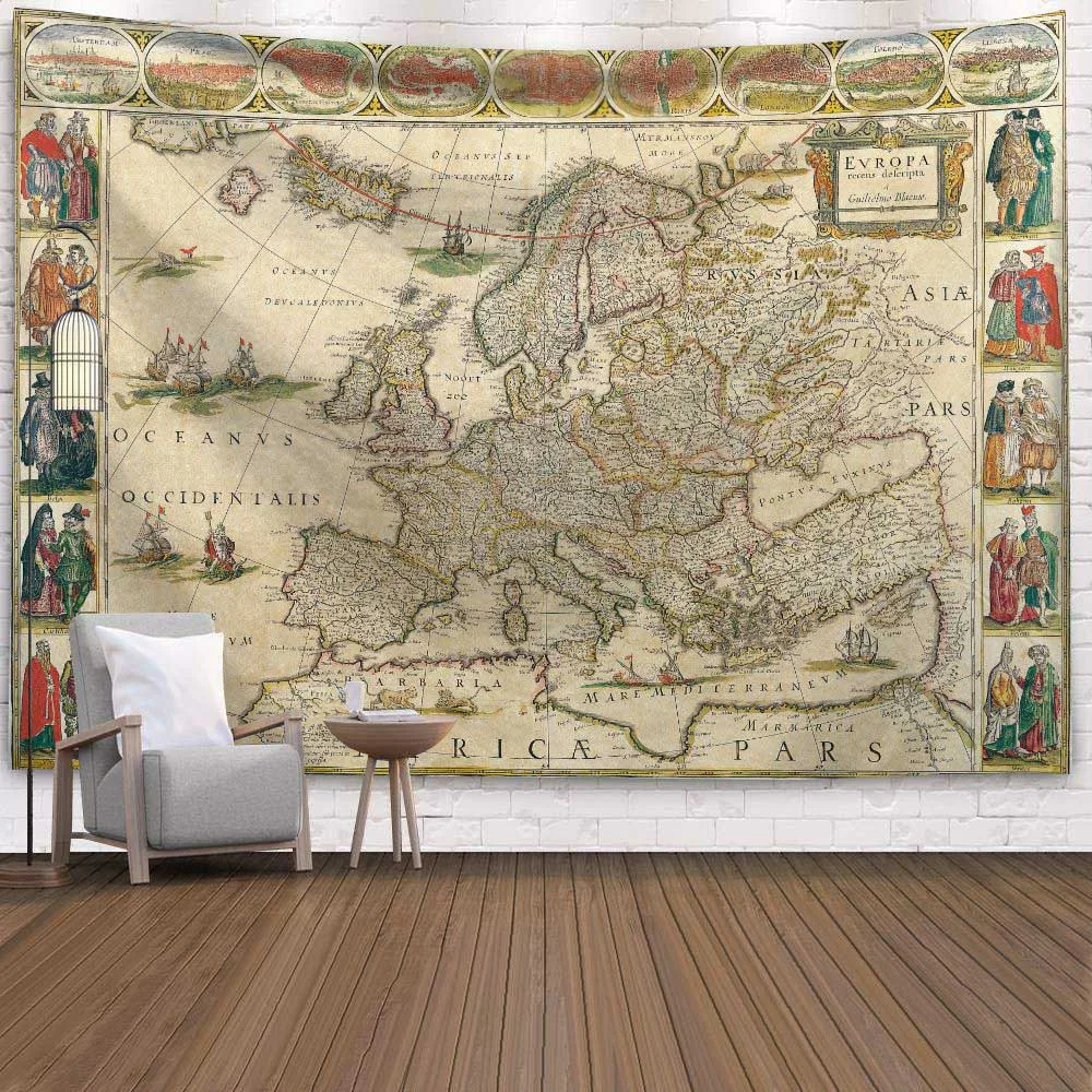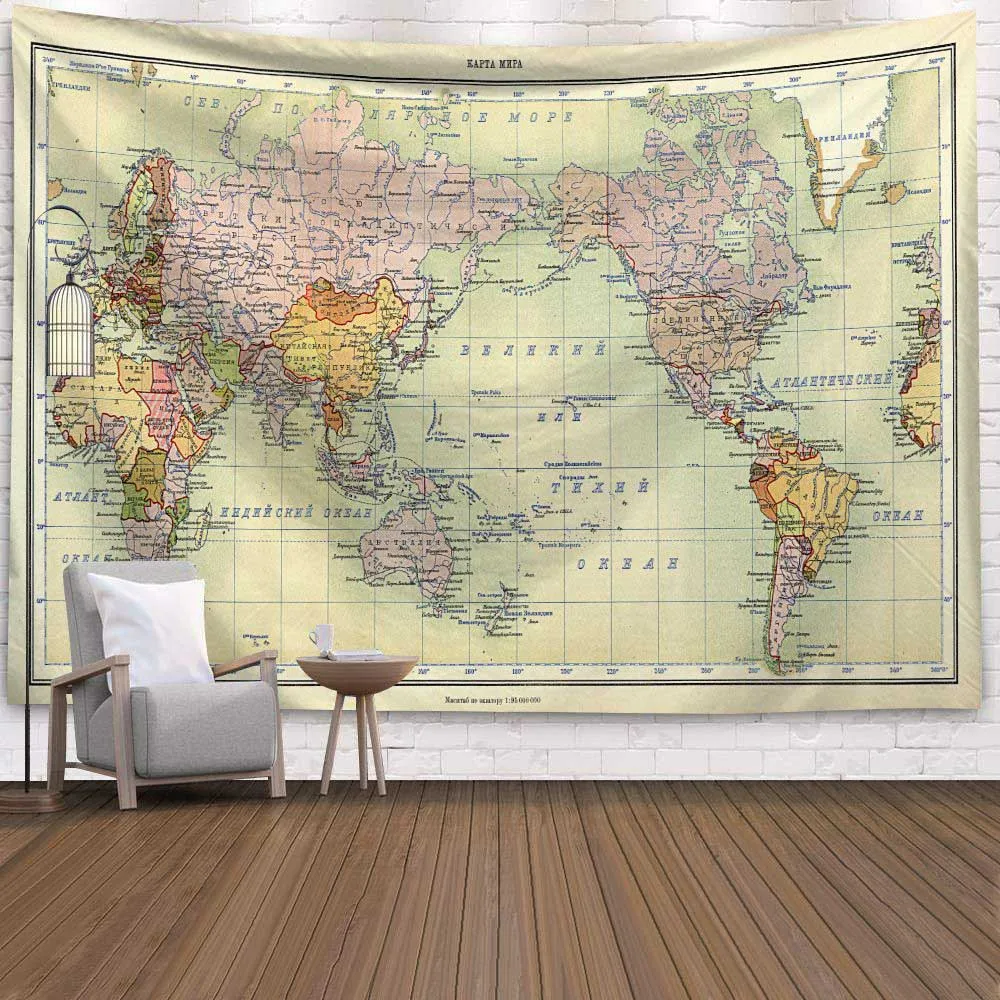 Винтажный настенный гобелен с рисунком карты мира, художественное настенное одеяло, декор для фермы, украшения для дома, навигационные карты, гобелены