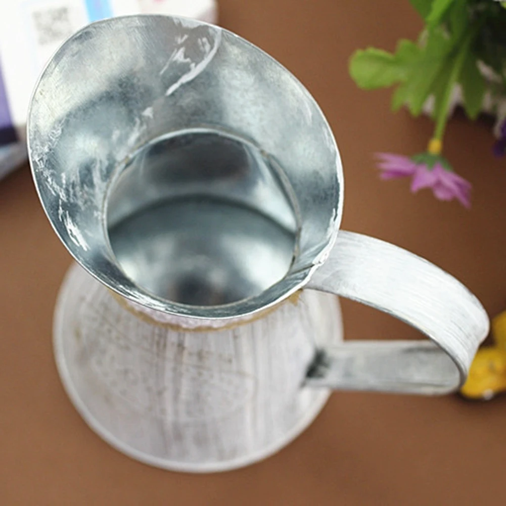 -Железный цветочный Комплект кастрюль для ваших разных растений, который предназначен для того, чтобы выглядеть как винтажное ведро со словами «цветы и сад» спереди.