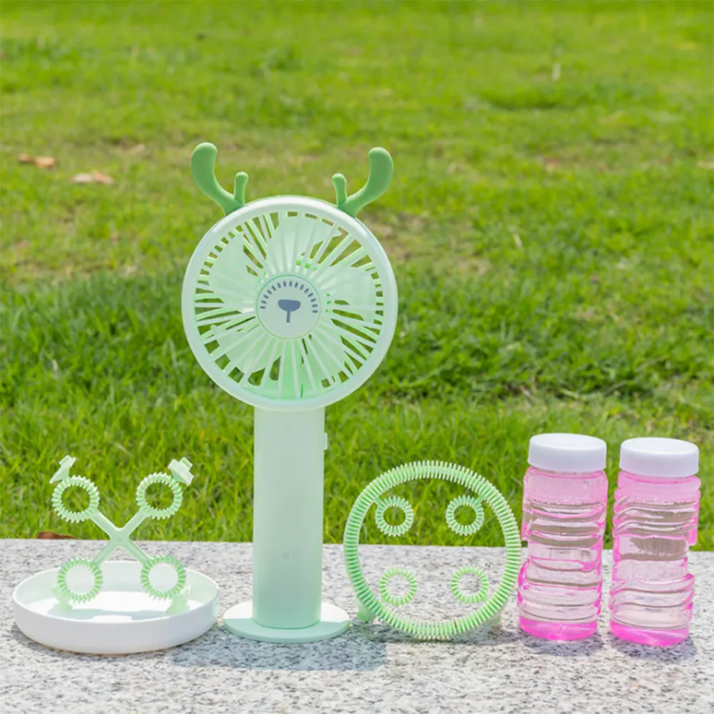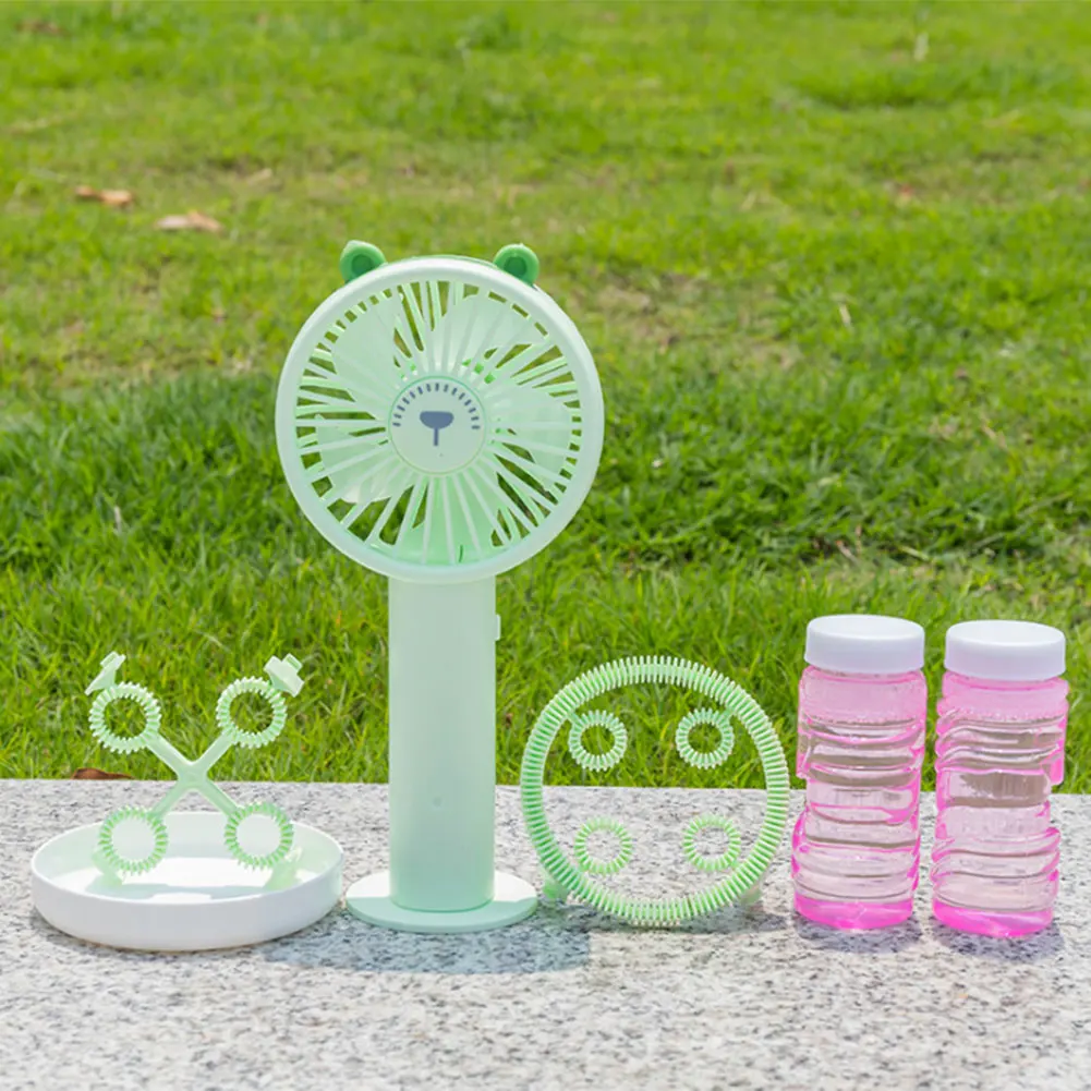 2-в-1 мини Электрический мультфильм животных ручной дующий пузыри машина вентилятор охлаждения