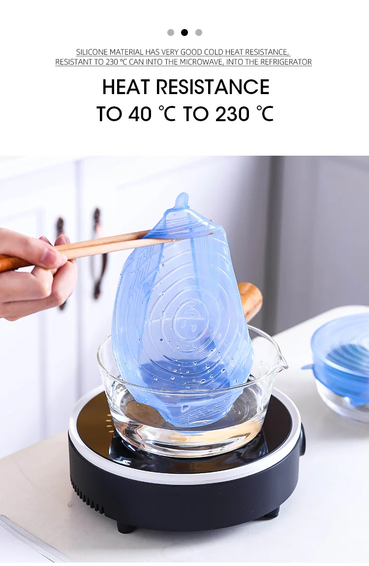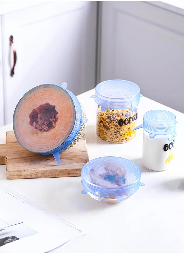 6 шт. силиконовая крышка для еды универсальная силиконовая миска крышка кастрюля миска для свежей еды крышка растягивающаяся Волшебная крышка кухонные аксессуары