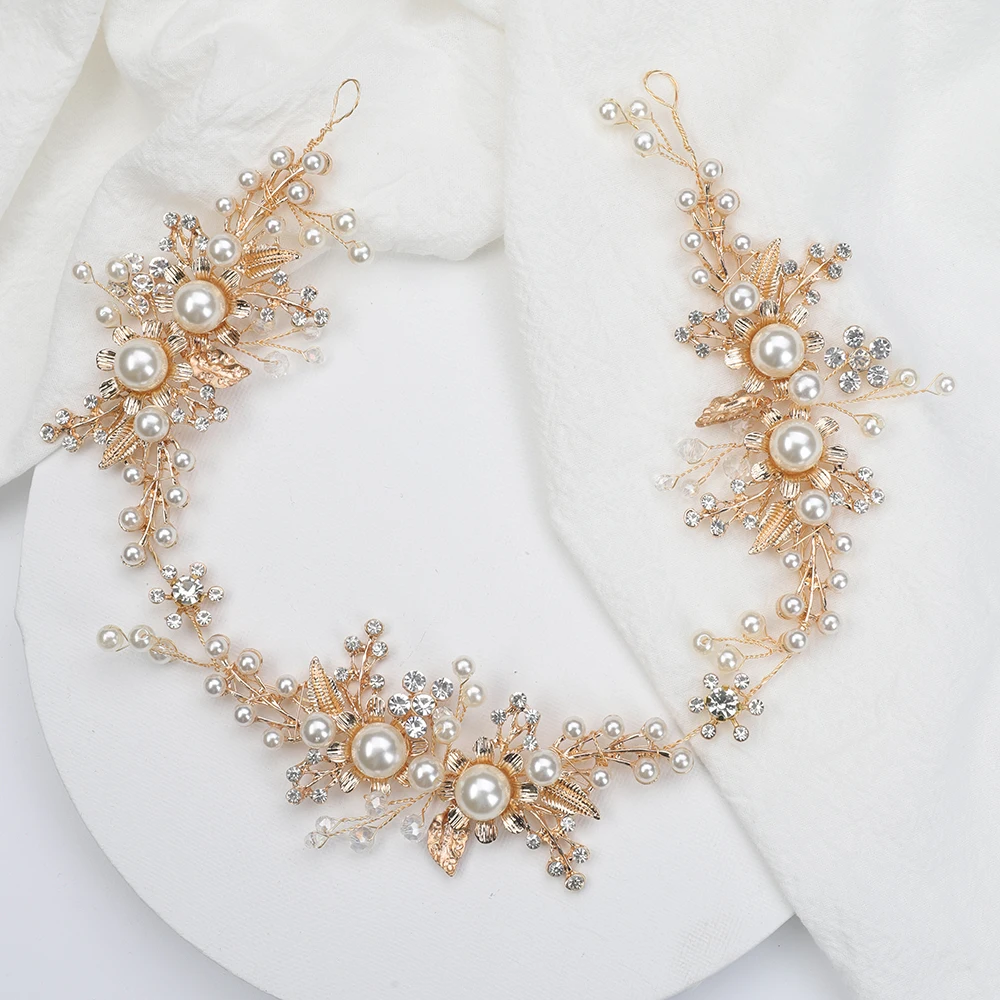 Цвет: золото Материал: искусственный жемчуг, искусственный кристалл, стразы и сплав Посылка включает в себя: одну головную повязку и пару сережек Этот шикарный головной убор подходит для особых случаев. Например, некоторые важные банкеты, свадьбы, сценические шоу, выпускные церемонии, вечеринки. Это может сделать вас более привлекательным.