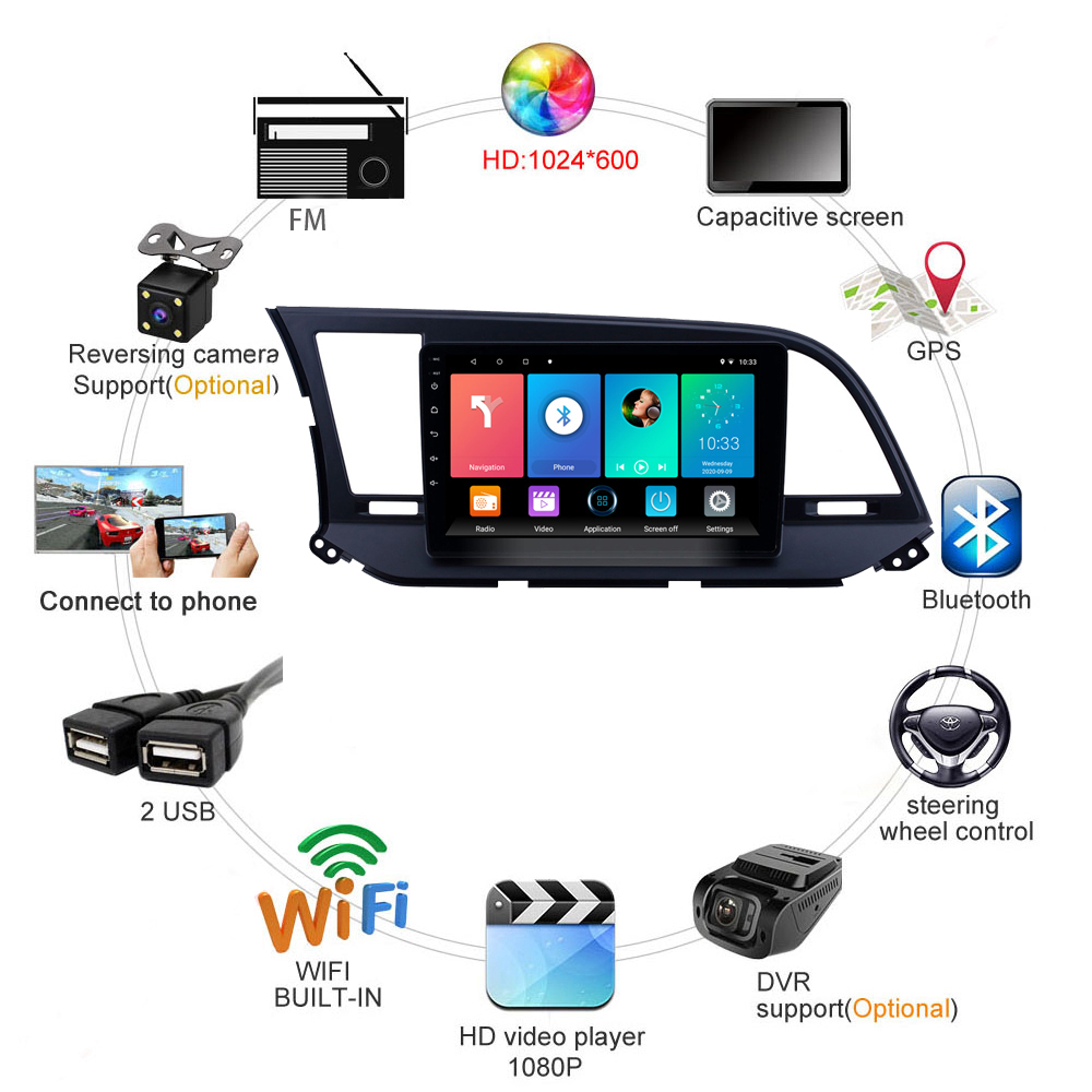 2 Din Android 8,1 9 дюймов Автомобильный Радио Мультимедиа Видео плеер Wifi навигация GPS для Hyundai Elantra 2016 2017 2018