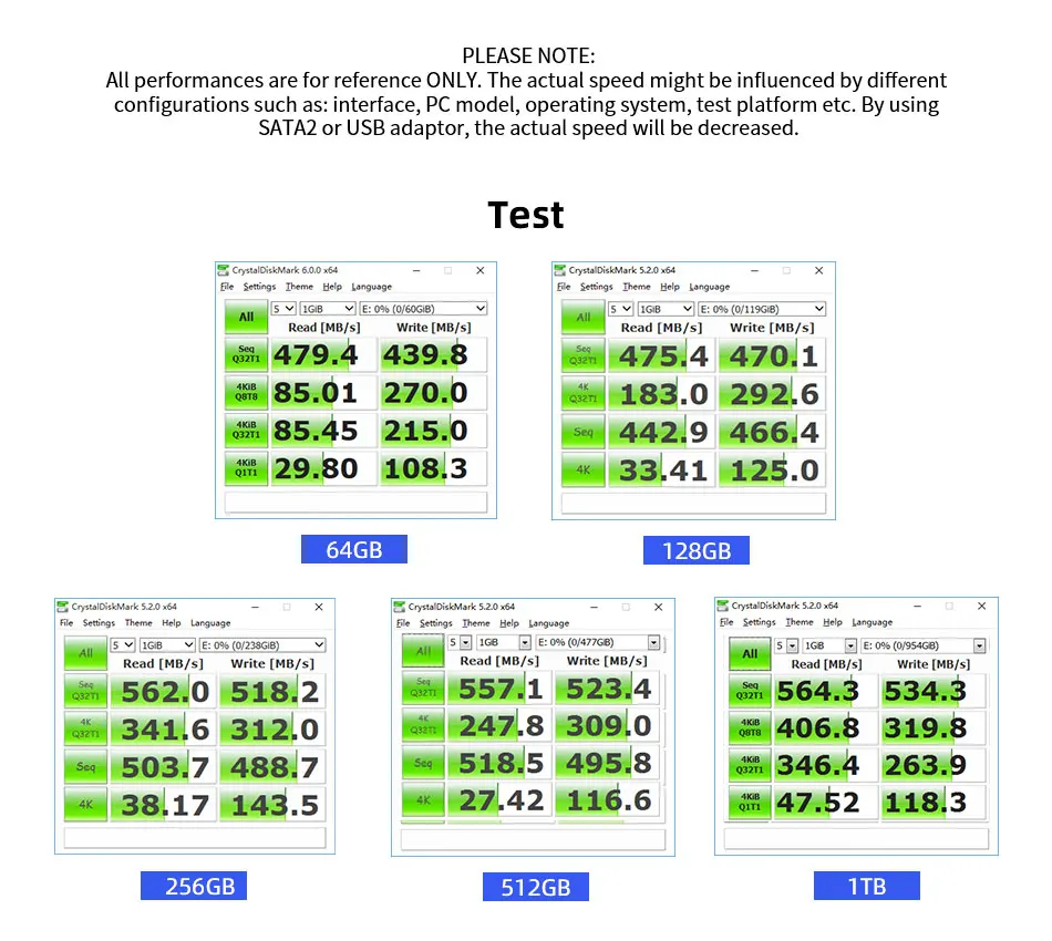 Скорость чтения/записи (МБ/с) 1 T B 510 ~ 570 (МБ/с) 480 ~ 540 (МБ/с)
