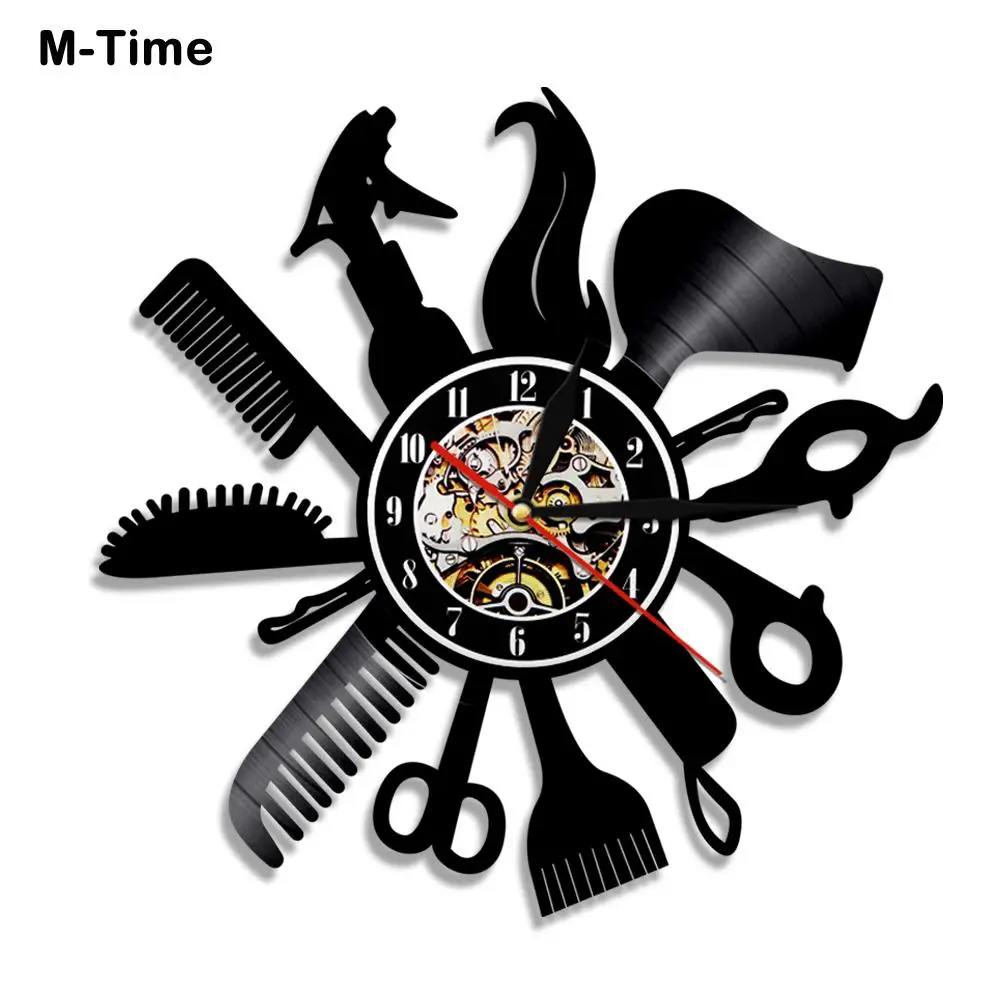 Парикмахерская настенные часы современный дизайн Виниловая пластинка Красота салон магазин Винтаж 3D часы для стрижки, парикмахерской подарок horloge