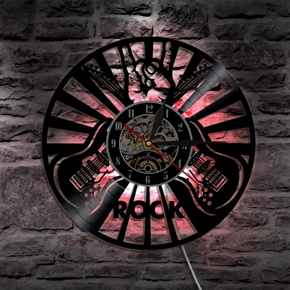 Виниловые настенные часы в рулоне для гитары, виниловая запись, светодиодный настенные часы, Креативные украшения для гостиной, подарок для любителей музыки, гитариста