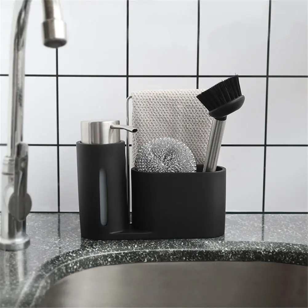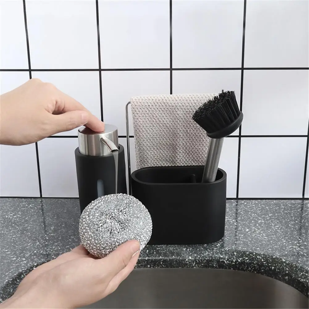 Черный модный набор для чистки мойки Caddy, кухонный набор Caddy с диспенсером для мыла, стальной шарик и кисть для организации кухни