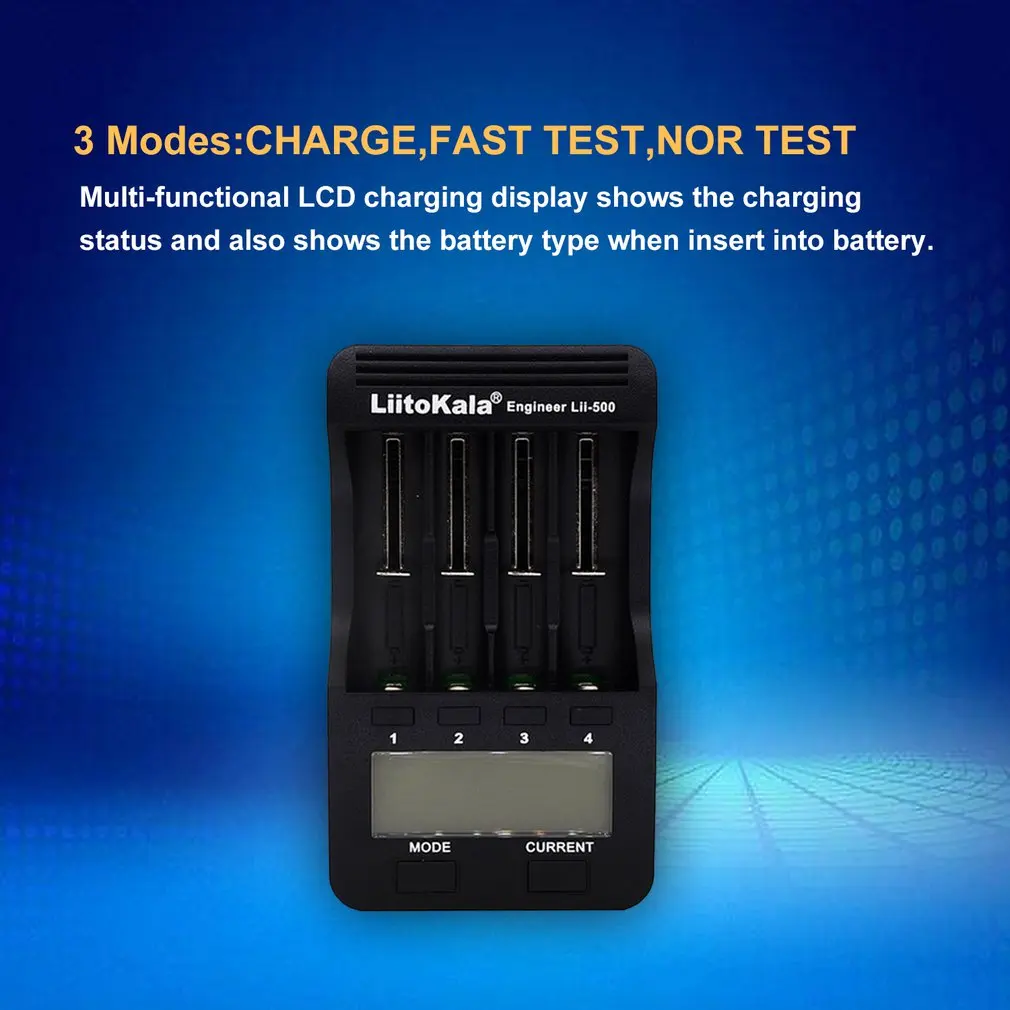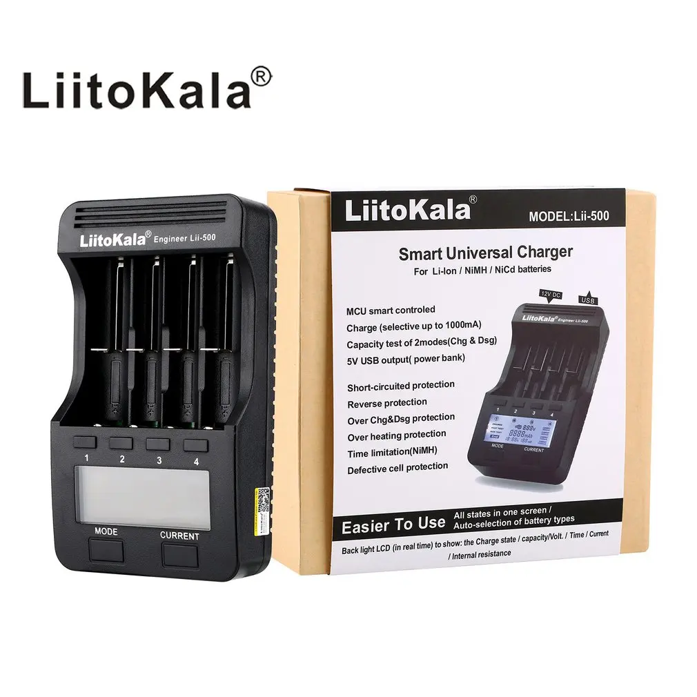 Liitokala Lii-500 18650 ЖК-дисплей зарядное устройство 26650 21700 14500 10440 4 слота NiMH Li-Ion Смарт зарядное устройство с адаптером
