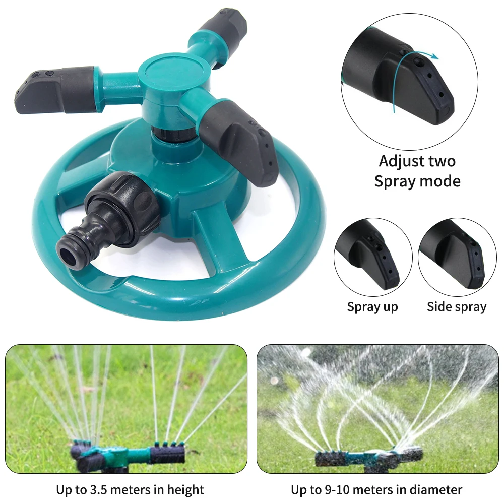 Этот товар изготовлен из высококачественного АБС-материала, экологически чистый, безопасный и прочный в использовании. Он имеет умную конструкцию из 3 сопло шланг трубы делает его может поливать на 360 градусов, удобно использовать. Он также имеет другие преимущества: такие как простота установки, экономия воды и т. д., идеально подходит для полива сада, газонов, деревьев, кустарников.