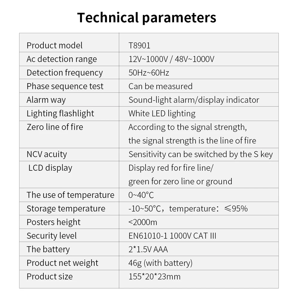 Функции: Бесконтактное измерение, фонарик, Автоматическое отключение питания, чередования фаз, низкое напряжение дисплея, 3,0 метров противоударной защитой (ручка).