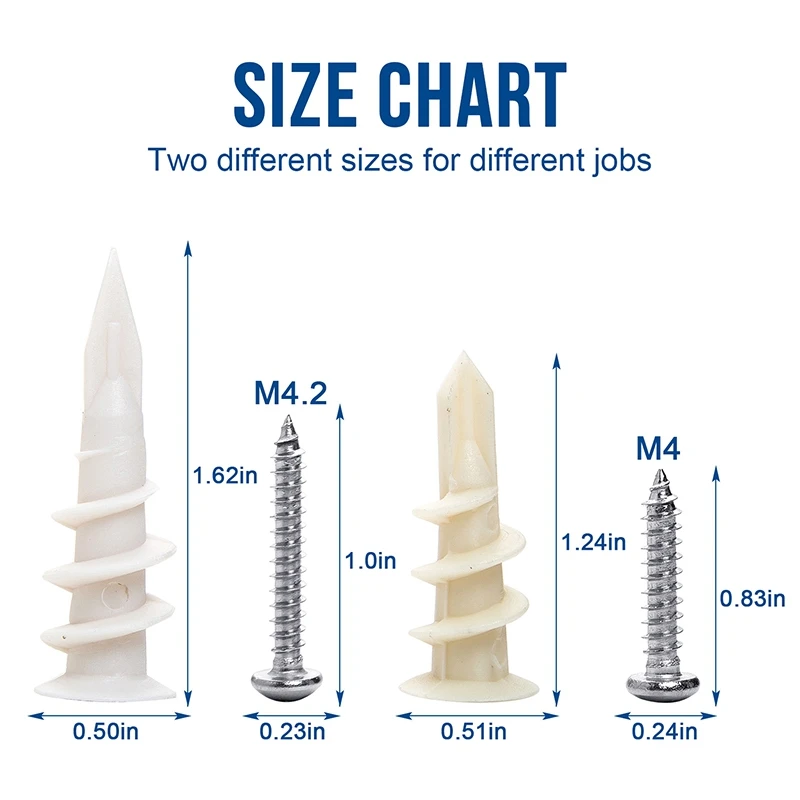 Изготовлен из высокопрочного пластика и нержавеющей стали 304. Конструкция с глубокой резьбой обеспечивает сильное взаимодействие 3/8 дюйма, 1/2 дюйма или 5/8 дюйма гипсокартона.