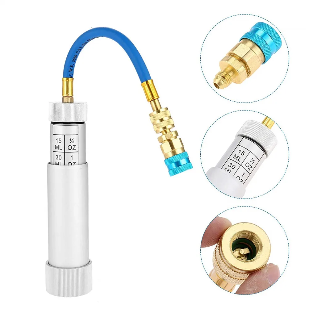Инструмент для впрыска охлаждающей жидкости для автомобильного кондиционера, инструмент для впрыска масляной краски, шприц R134A 2 унций, ручной маслораспылитель A/C, адаптер для инжектора масла