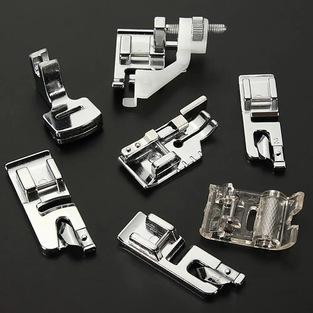 1. Стежка направляющая нога; 2. Пинтук ноги 5 канавок; 3. Атласная стежка ноги; 4. Лапка для шва "Зиг-заг", Ягуар; 5. Двойной шов ноги; 6. Невидимая молния ноги; 7. Роликовые Ноги