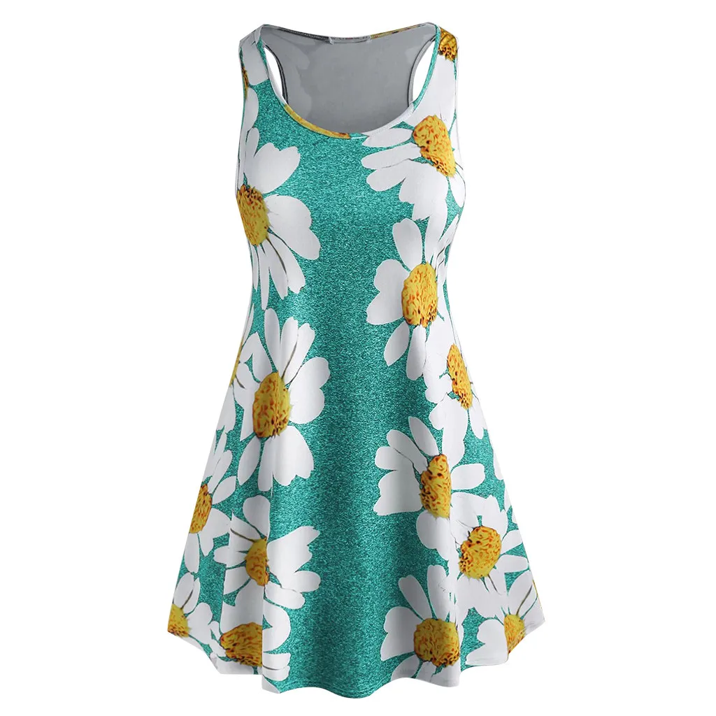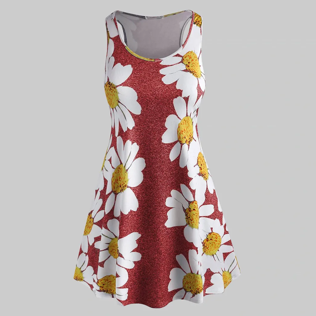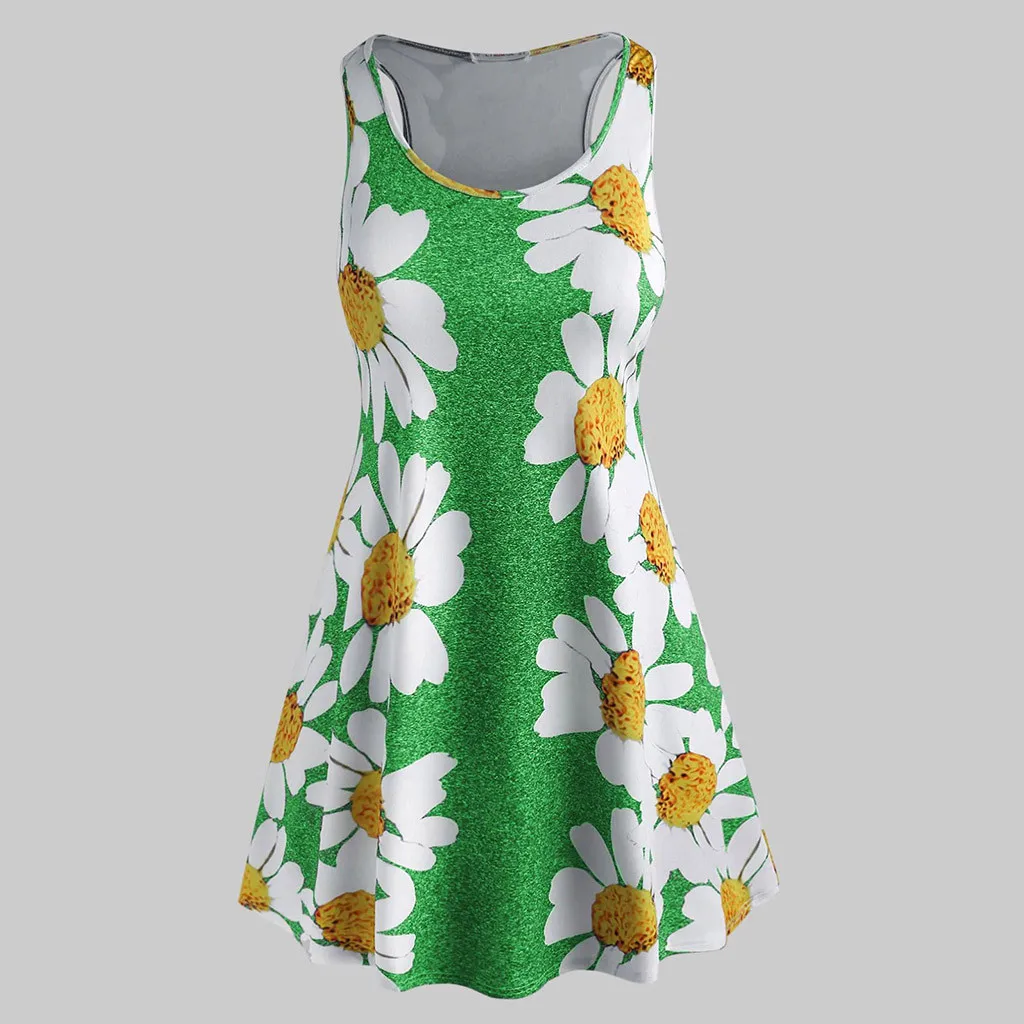 Женское мини-платье без рукавов с круглым вырезом и цветочным принтом размера плюс