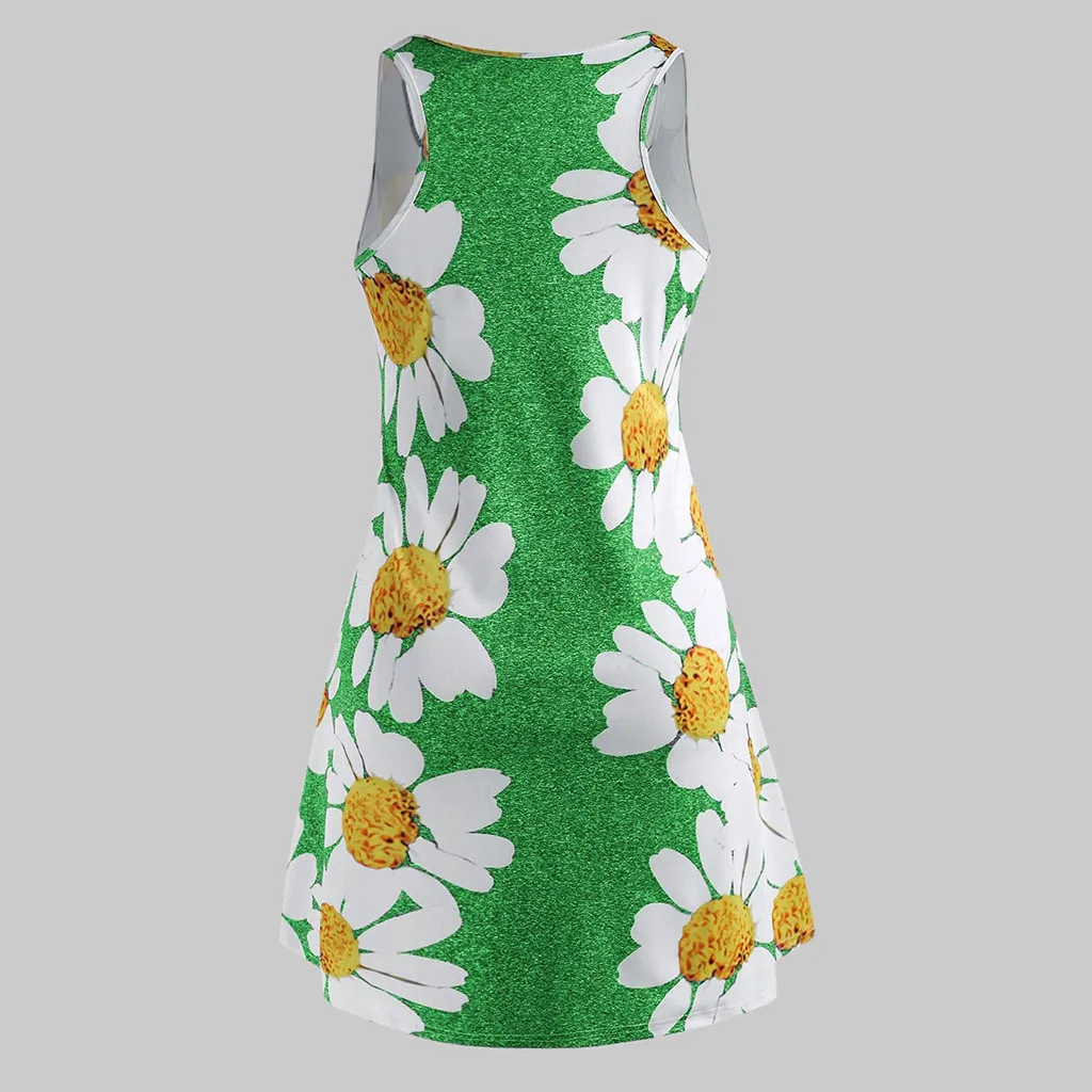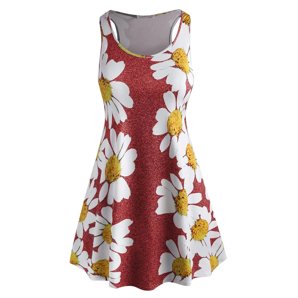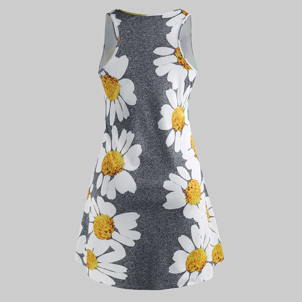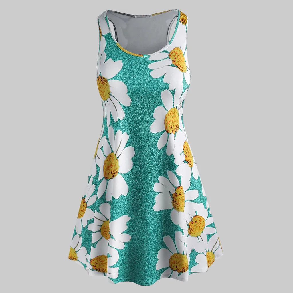 Женское мини-платье без рукавов с круглым вырезом и цветочным принтом размера плюс