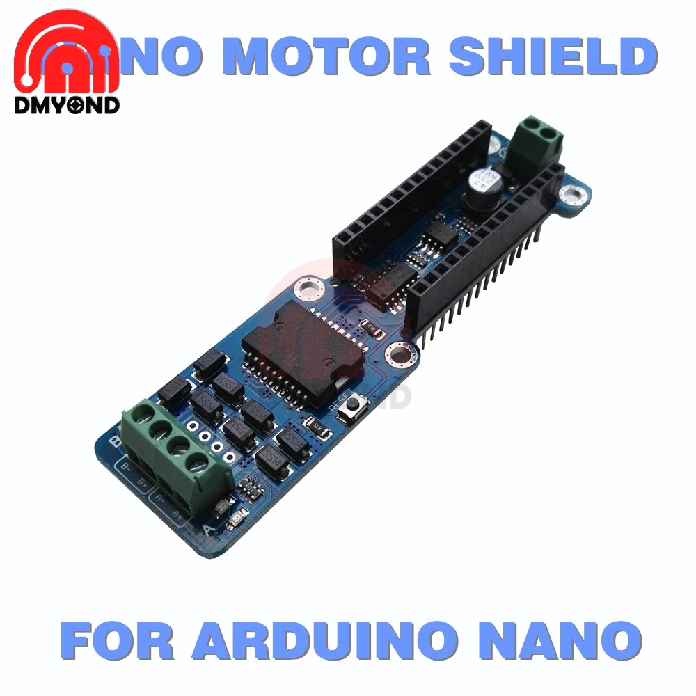 NANO Motor Shield основан на L298P, который является двойным полномостовым драйвером, предназначенным для привода индуктивных нагрузок, таких как реле, соленоиды, DC и шаговые двигатели. Он позволяет управлять двумя двигателями постоянного тока с вашей NANO платой для Arduino, контролируя скорость и направление каждого из них независимо. Вы также можете измерить поглощение тока двигателя каждого двигателя, среди других особенностей.