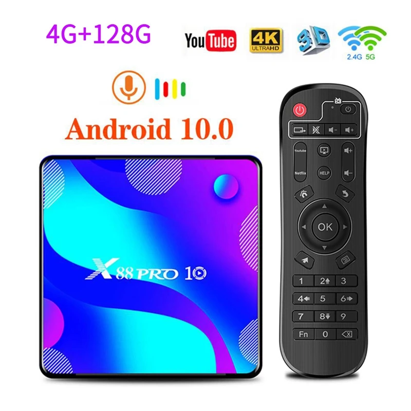 ТВ-приставка X88 PRO 10 Android 10,0 4G + 128G Rockchip RK3318 4K 1080P Netflix телеприставка