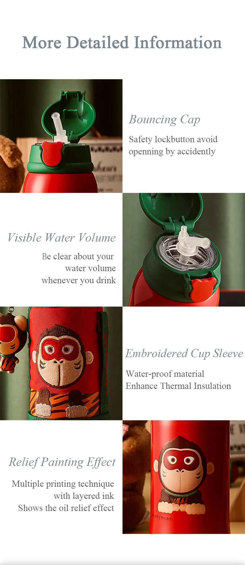 Емкость: 630 мл Материал: Внутренний 316 SS, внешний 304 SS Изоляция: сохраняет тепло более 55 ℃ (около 8 часов) Сохраняет тепло ниже 8 ℃ (около 4 часов) Китайская традиционная культура Красочный узор с эффектом сброса масла Подарите своим детям более невинное детство