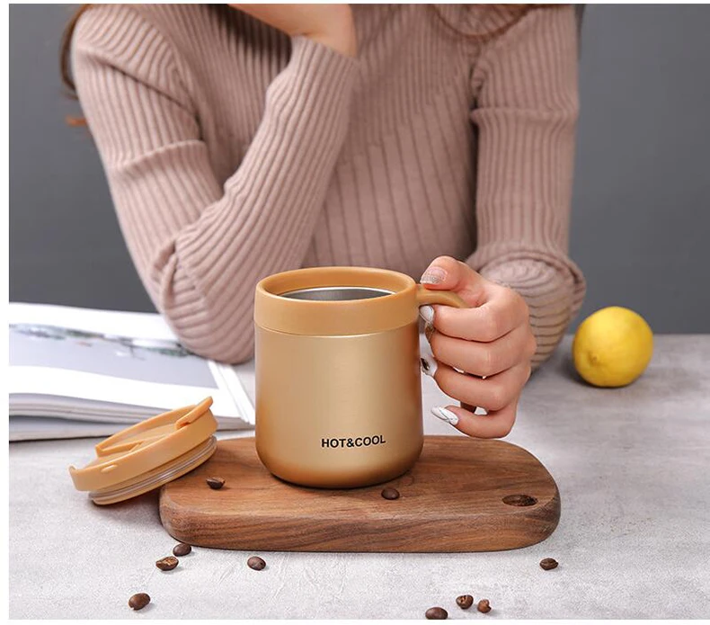 Термокружки для кофе с ручкой, 350/500 мл, термос из нержавеющей стали с двойной крышкой для путешествий, офиса, чая, напитков, бутылок с водой