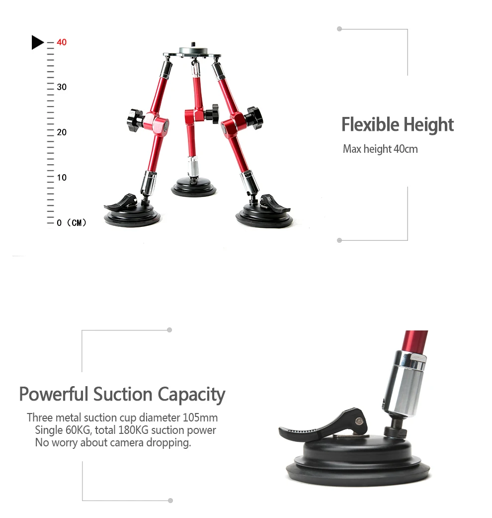 6. Новый дизайн 6 соединений, может свободно вращаться, легко регулировать присоска, легко мульти-угол съемки.