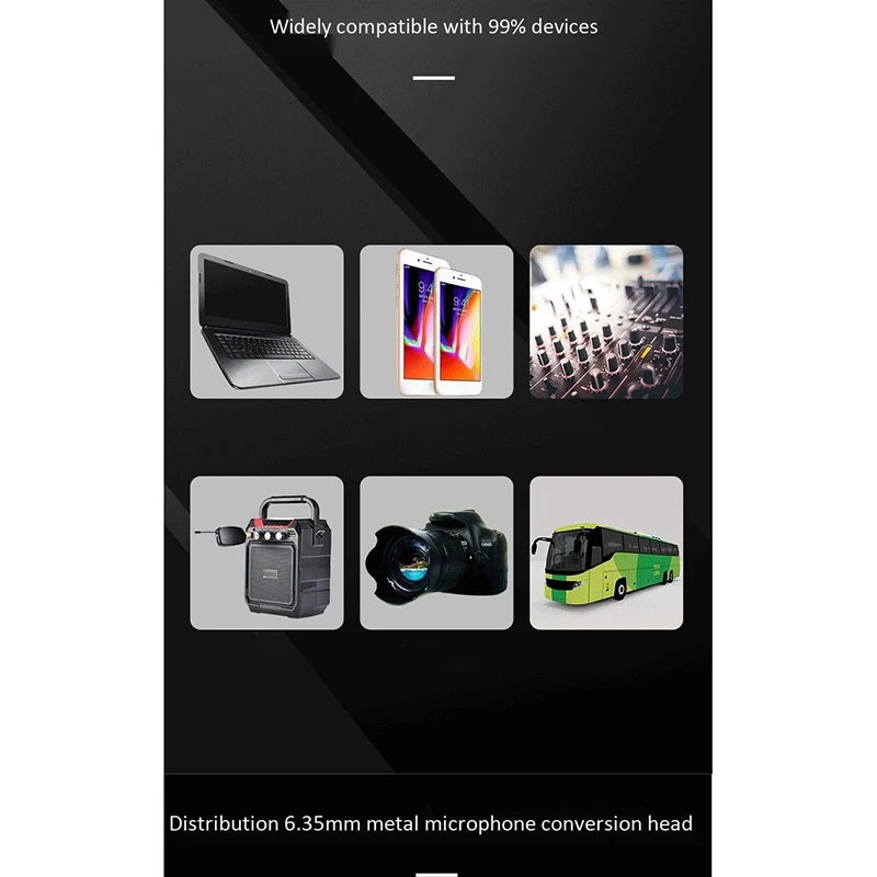 Примечание: Этот UHF беспроводной микрофон должен использоваться со звуком или усилителем, громкоговорителем и т. д. он не может использоваться независимо. Если есть разъем для микрофона или входной разъем o для подключения приемника, включите машину и подключите автоматически, вы можете иметь функции беспроводного усиления и KTV. Примечание: Беспроводной микрофон UHF не имеет звукового проигрывателя!