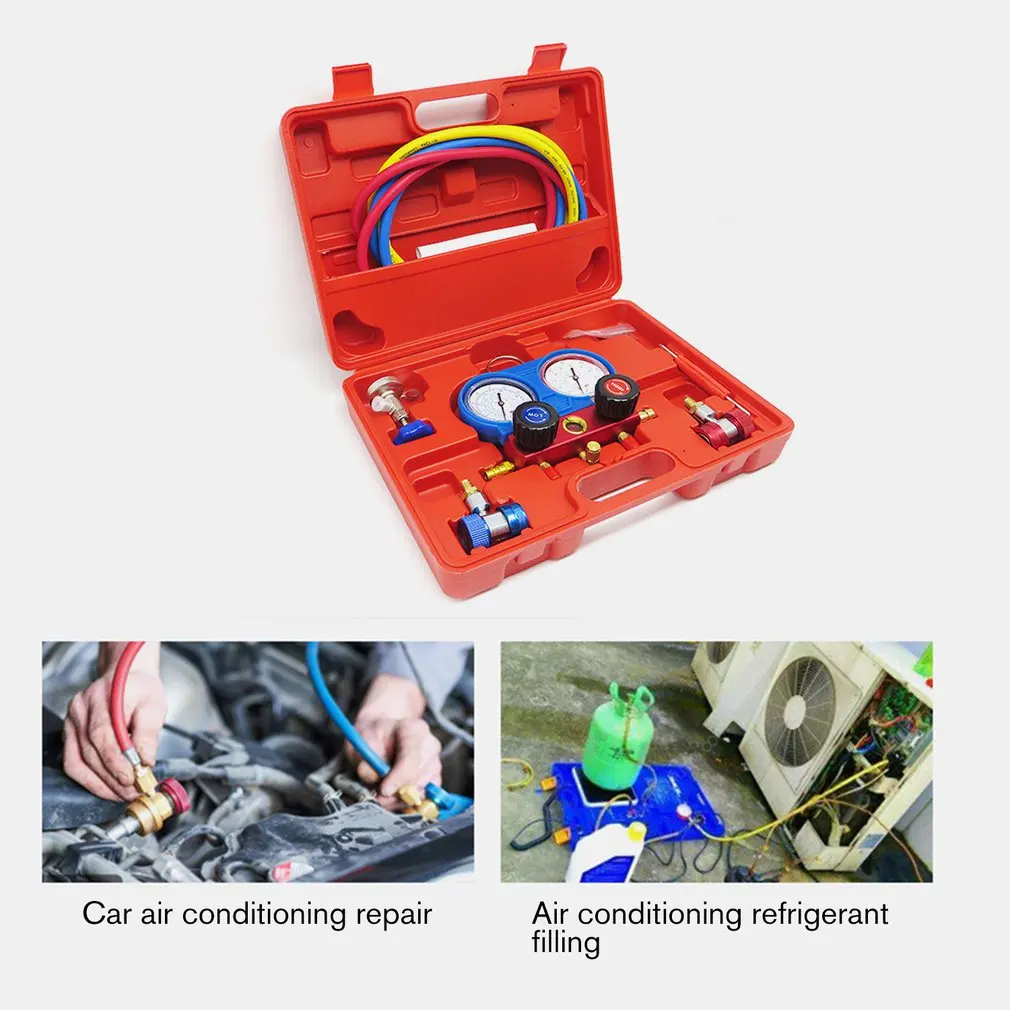 R134A HVAC A/C Холодильный комплект набор манометра для коллектора переменного тока автомобильный воздушный Вакуумный насос инструмент для ремонта кондиционера фтора