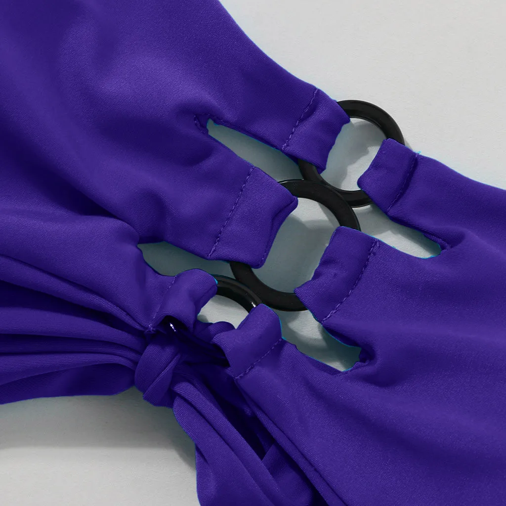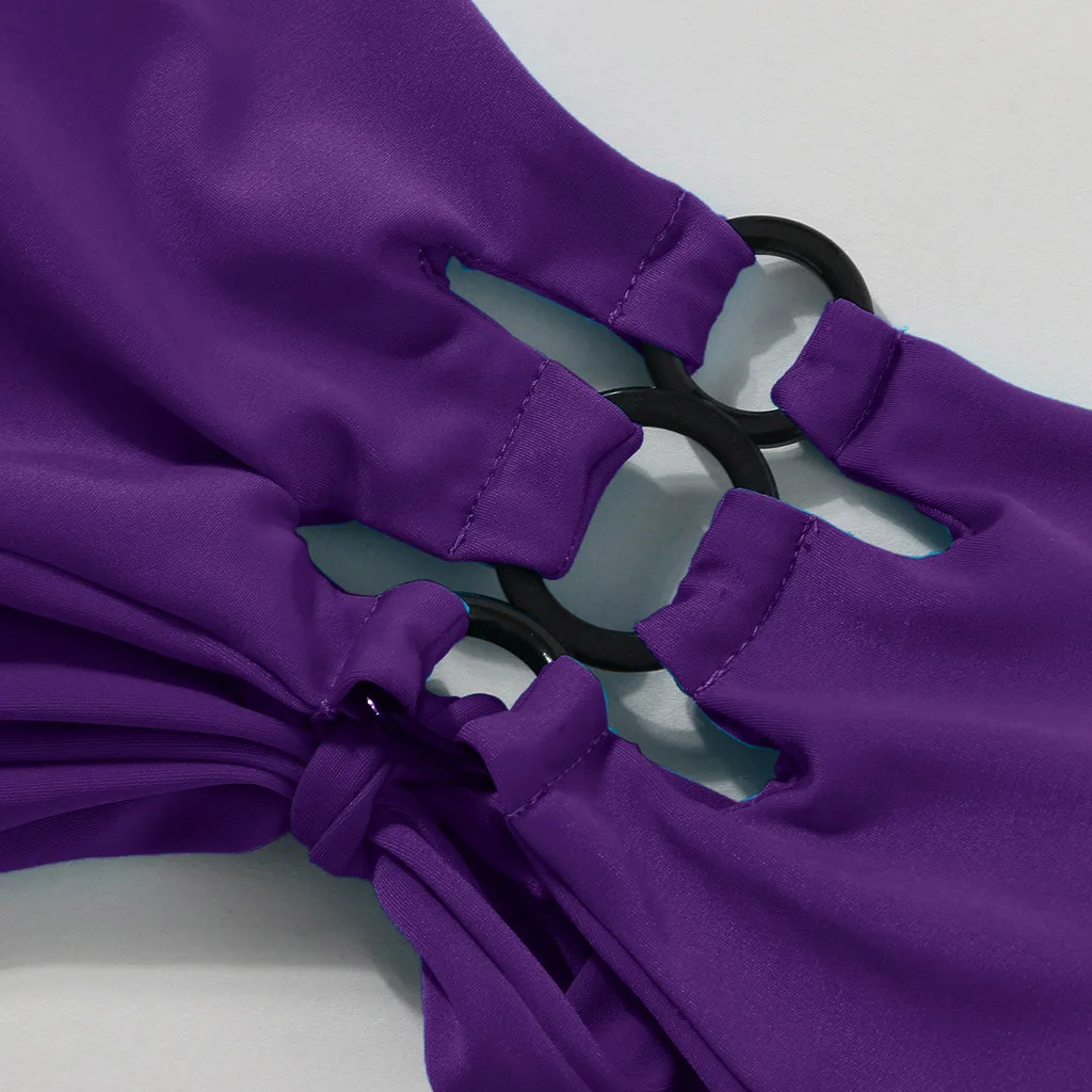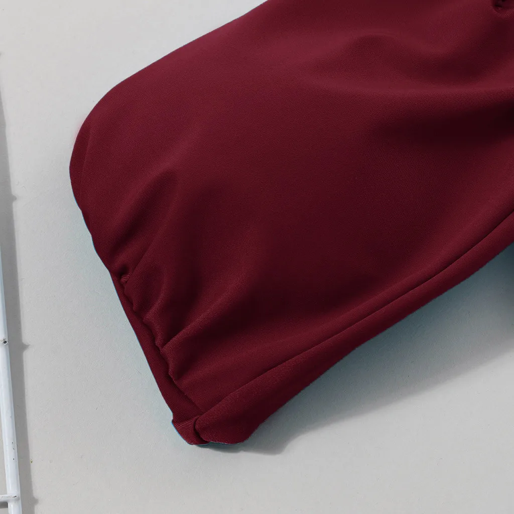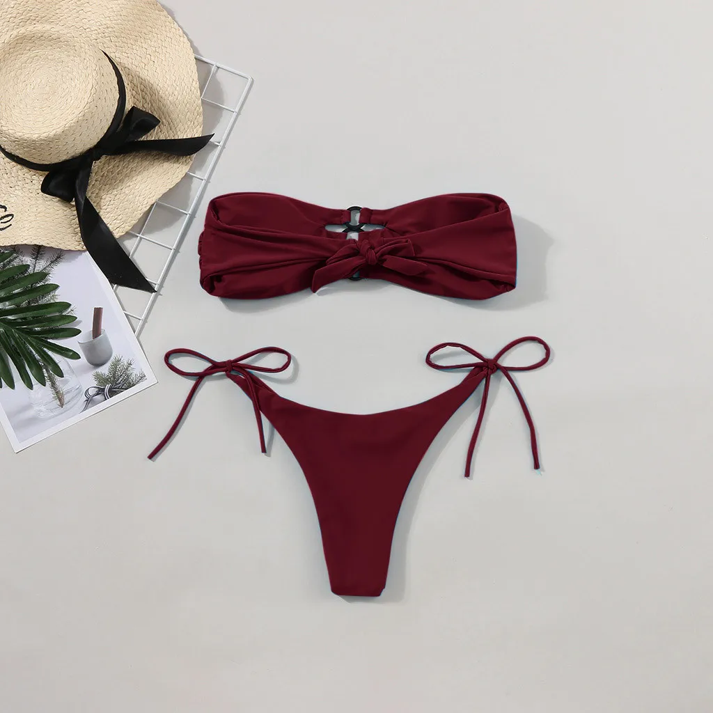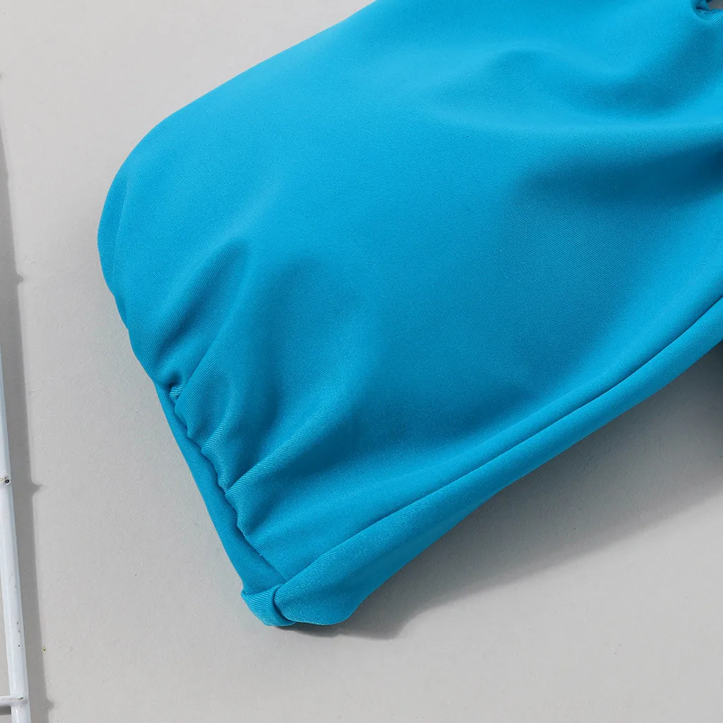Женский модный комплект бикини чистого цвета без рукавов из двух частей, летний купальник