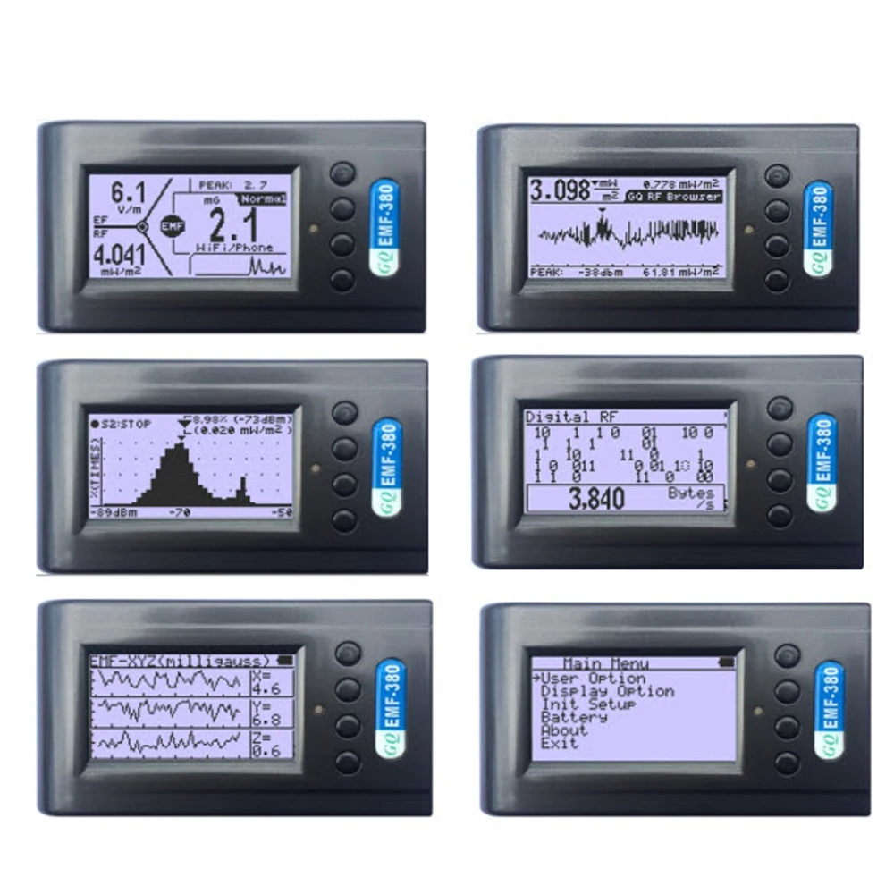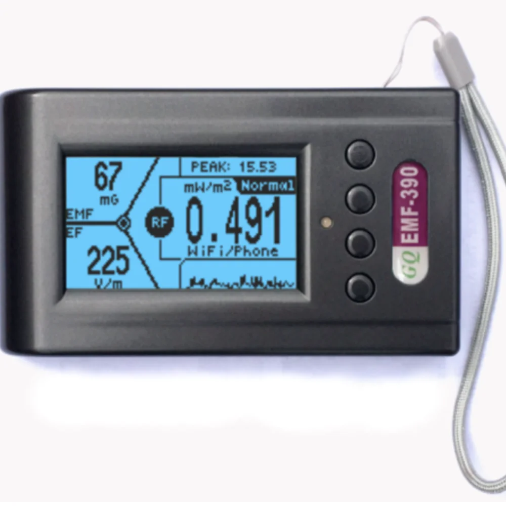 G-Q EMF-390 готов, Многофункциональный цифровой измеритель EMF предназначен для портативного и удобного устройства. Интегрированные функции тестирования устройства включают трехосевые электромагнитные поля, электрическое поле, радиочастоту и радиоспектральный анализатор мощности. Измеритель способен идентифицировать общий источник от EMF измеренных, таких как линия электропередачи, умный счетчик, WiFi, микроволновая печь, сотовая башня и т. Д. Он также поставляется со встроенным звуковым и визуальным сигналом. Он используется для EMF, ELF, EF, RF обнаружения и мониторинга как внутри, так и снаружи, а также в других аналогичных средах. Он может постоянно контролировать излучение. При подключении устройства к ПК программное обеспечение ПК может загружать данные радиации на компьютер, и пользователь может анализировать эти данные позже.