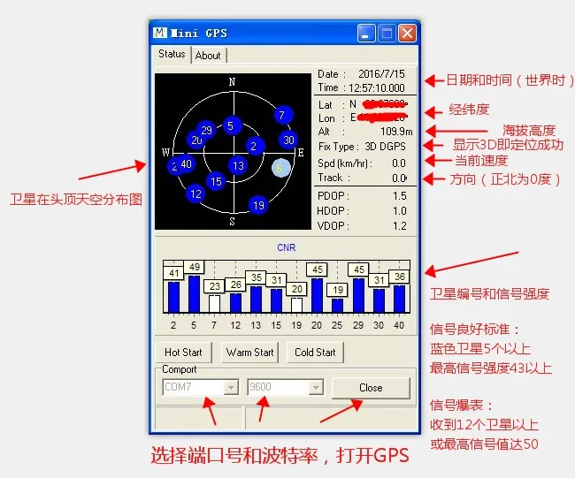 Описание программного обеспечения тестирования GPSSignal: (Используется gpsскорость передачи данных Select4800)