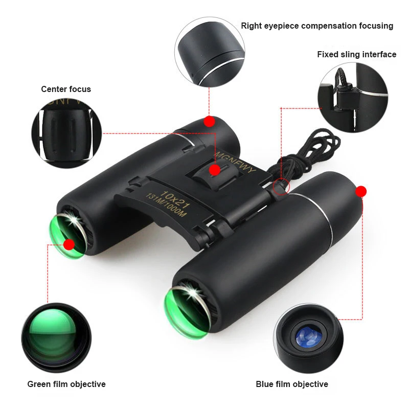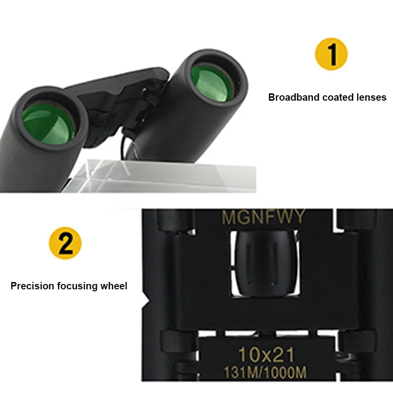 1. Четкое видение: Оптика бинокль с 10X увеличением, вы можете увидеть все визуальное поле для просмотра объектов легко.