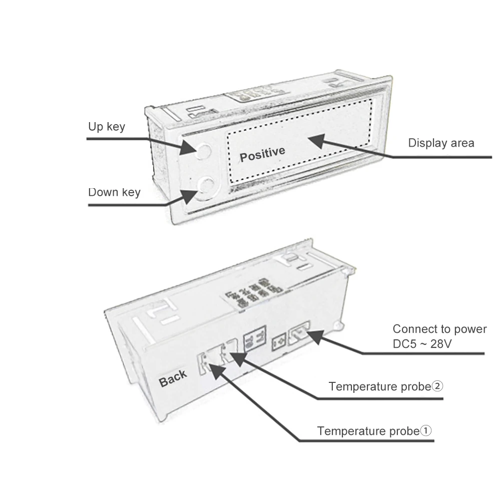Описание: многофункциональный электронный модуль часов, время установки, температура внутри и снаружи, напряжение как один. Вы можете отобразить один элемент, или вы можете попеременно пройти через элементы и настроить отображаемый элемент. Чип времени с помощью чипа Epson RX8025T, этот чип является термокомпенсированным чипом часов, точное время. Стандартный 0,3 m + 1,5 m модуль с двумя водоустойчивые зонды, диапазон рабочих температур от-35 ~ 120 градусов. С регулировкой яркости, 3 регулировки яркости. И автоматическая функция яркости, которая может быть темной ночью, осветляет в течение дня. Технические характеристики: 1, рабочее напряжение: DC 5,0 ~ 28V 2, размер оправы: 22*58 мм 3, Установка Размер отверстия: 19,5*56 мм 4, Напряжение Диапазон отображения: 5,0 ~ 28V 5 Диапазон отображения температуры: -35 ~ 120 ℃ (два температурных датчиков, 0,3 м + 1,5 м) 6, питающий провод Длина: 28 см Как использовать: вверх ключ: Под нормальным дисплеем, нажатие этой кнопки будет переключаться между шестью состояниями отображения [Времени] → [даты] → [температура 1] → [Температура 2] → [Напряжение] → [дисплей переменного цикла]. (Примечание: элементы отображения и время переключения в режиме отображения альтернативного цикла могут быть настроены по параметрам «dd» и «dF» соответственно. См. Следующую таблицу под ключом: при нормальном состоянии дисплея нажмите эту клавишу, чтобы ввести настройки времени \ даты \ года \ параметра. Нажмите клавишу, «точки» начали мигать, нажмите кнопку, чтобы отрегулировать значение. После настройки нажмите кнопку снова, «час» начнет мигать, нажмите клавишу, чтобы отрегулировать значение. Затем нажмите клавишу, чтобы ввести регулировку даты [обратите внимание, что середина толстой кишки не горит], «День» начал мигать, нажмите кнопку после того, как Мелодия «месяц» начала мигать, настроиться, а затем нажмите кнопку «год», чтобы начать мигать, Нажмите клавишу, чтобы отрегулировать параметры в расширенном наборе, см. Следующую «Значение кода и роль таблицы» Значение кода, пожалуйста, обратитесь к следующей коррекции ошибок при измерении напряжения 1.0.0u, увеличение положительного числа, уменьшение отрицательного числа. Например, фактическое напряжение питания 12,0 V, но в таблице представлены 11,9 V, он считается 0.1u. 2.Ac Температура ① Параметры калибровки ошибок. Положительное число увеличивается, отрицательное число уменьшается, единица измерения градуса, диапазон регулировки-5 ~ 5. Например, если вы считаете, что отображаемая температура на 1 градус выше фактической температуры, то Установите Переменный ток: -1, поэтому электронные часы автоматически уменьшаются на 1 градус и отображаются. (Примечание: Если у вас нет стандартного термометра для справки, рекомендуется сохранить его как переменный ток: 0) температура ② Параметры калибровки ошибок. Положительное число увеличивается, отрицательное число уменьшается, единица измерения градуса, диапазон регулировки-5 ~ 5. Например, если вы считаете, что отображаемая температура на 1 градус выше фактической температуры, установите ее в переменный ток: -1, так что электронные часы автоматически вычитаются на 1 градус и отображаются снова. (Примечание: Если у вас нет стандартного термометра для справки, рекомендуется сохранить его как переменный ток: 0) 3.dd пользовательский цикл показывает дисплей [dd: 0] время + темпера