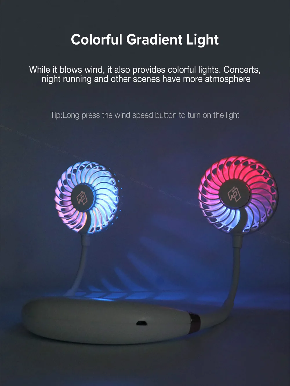 Портативный мини Массажный подвесной вентилятор для шеи, воздушный охладитель, USB мини вентилятор, красочный светильник, настольный вентилятор, маленький массажер для шеи