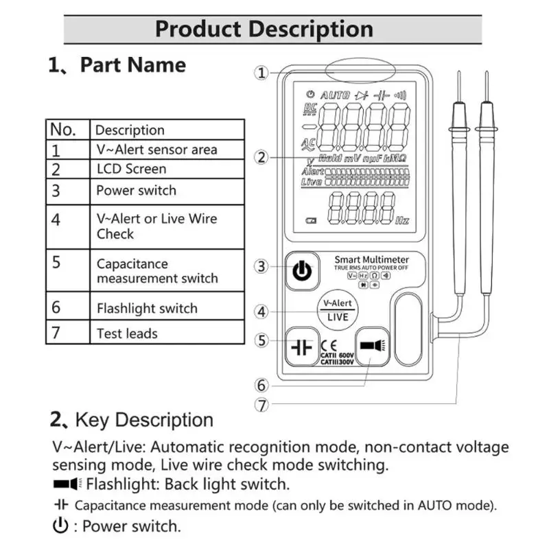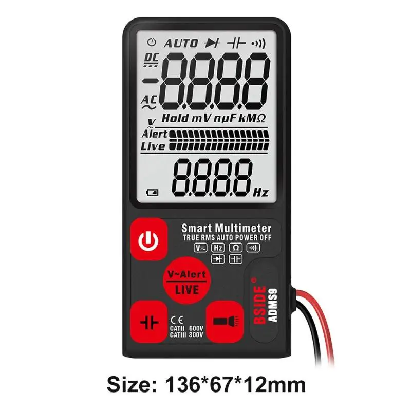 Модель :( A)ADMS9/(B)ADMS9CL Материал: корпус из АБС-пластика Максимальный дисплей: 9999 Напряжение постоянного тока: 600V/0,1 v ± (0.8% показаний + 3 шт.) Напряжение переменного тока: 600V/0,1 v ± (1.2% показаний + 5 шт.) Сопротивление: 1Ω-10MΩ ±(1.2% считывание + 3 отсчета) Постоянной ёмкости, универсальный конденсатор: 1000 мкФ/0,1 мкФ ± (3.5% показаний + 8 штук) 6000 мкФ/1 мкФ Ф ± (4.5% Чтение + 10 слов) Частота: 10 Гц-1000 Гц ± (2% считывание + 10 отсчетов) Автоматическое выключение: Да Светильник: Да Диод: менее 1,0 В светодиод Автоматическая идентификация Зуммер: Да Бесконтактное Обнаружение напряжения: Да Обнаружение Firewire: Да Подсказка низкого напряжения: Да Источник питания: 2*3 в CR2032 (не входит в комплект) Размер: 136*67*12 мм/5,35*2,64*0,47" Примечания: 1. Из-за различных настроек монитора и светильник эффект, фактический цвет элемента может быть s светильник ly отличается от цвета, представленного на снимках. Спасибо! 2. Возможны отклонения в 1-3 см вследствие измерений вручную.