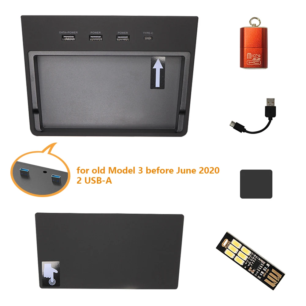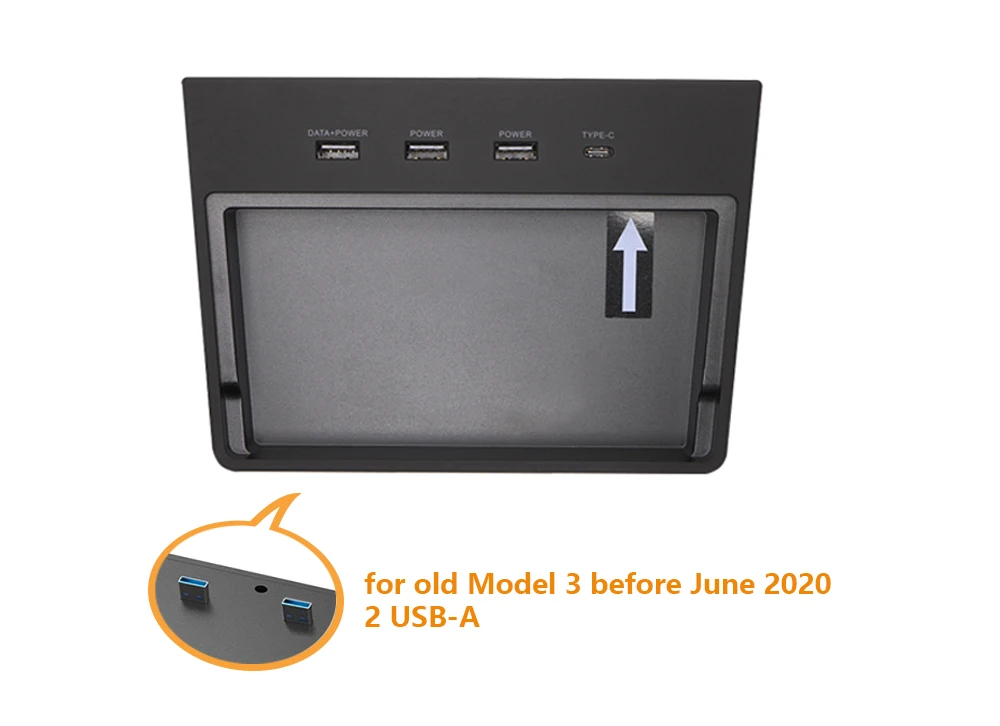 Для старой модели telsa 3. 2 USB-A для передачи данных. 2 USB-A для беспроводных зарядных устройств. 1 разъем типа c.