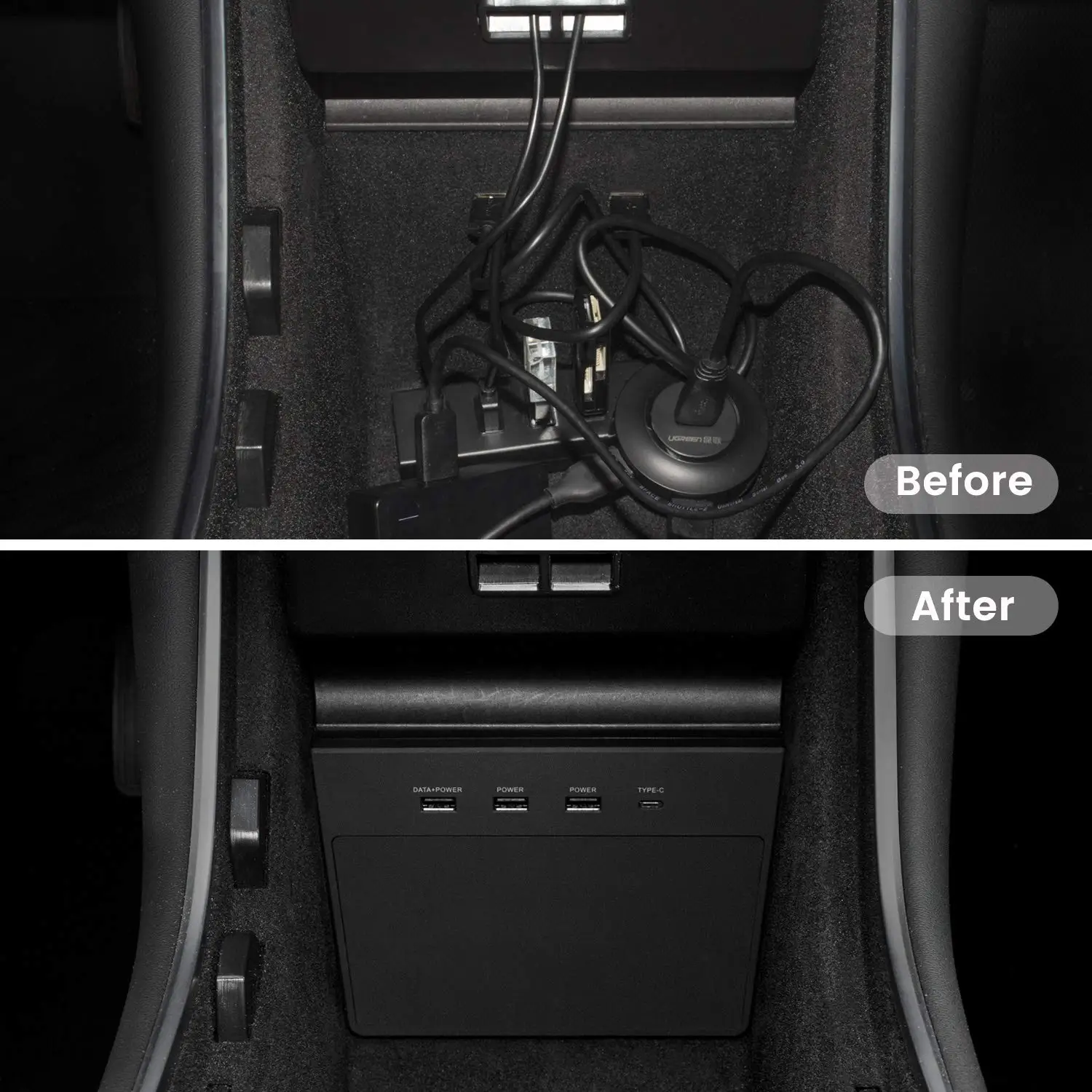 Идеальная интеграция для центральной консоли Tesla. Сделайте его чистым и аккуратным, никаких дополнительных разделители USB, концентраторов.