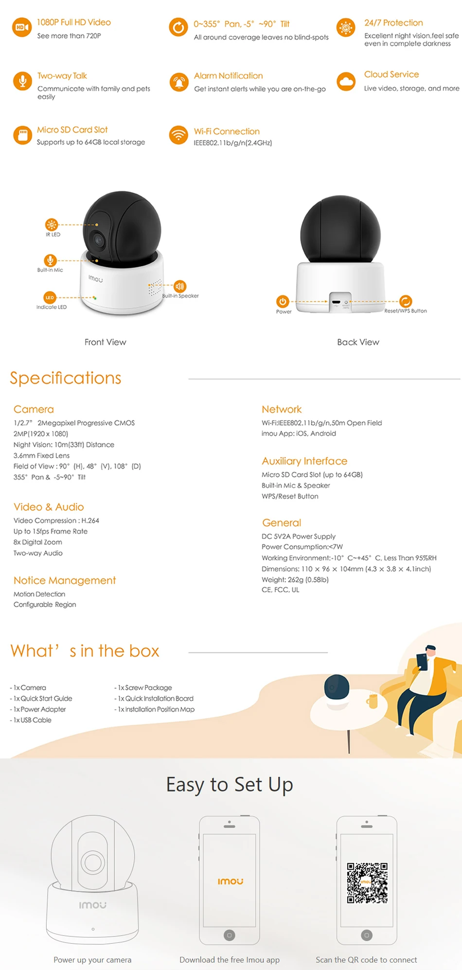 Видео надежно хранятся и доступ через местный sd-карте или imou облако.