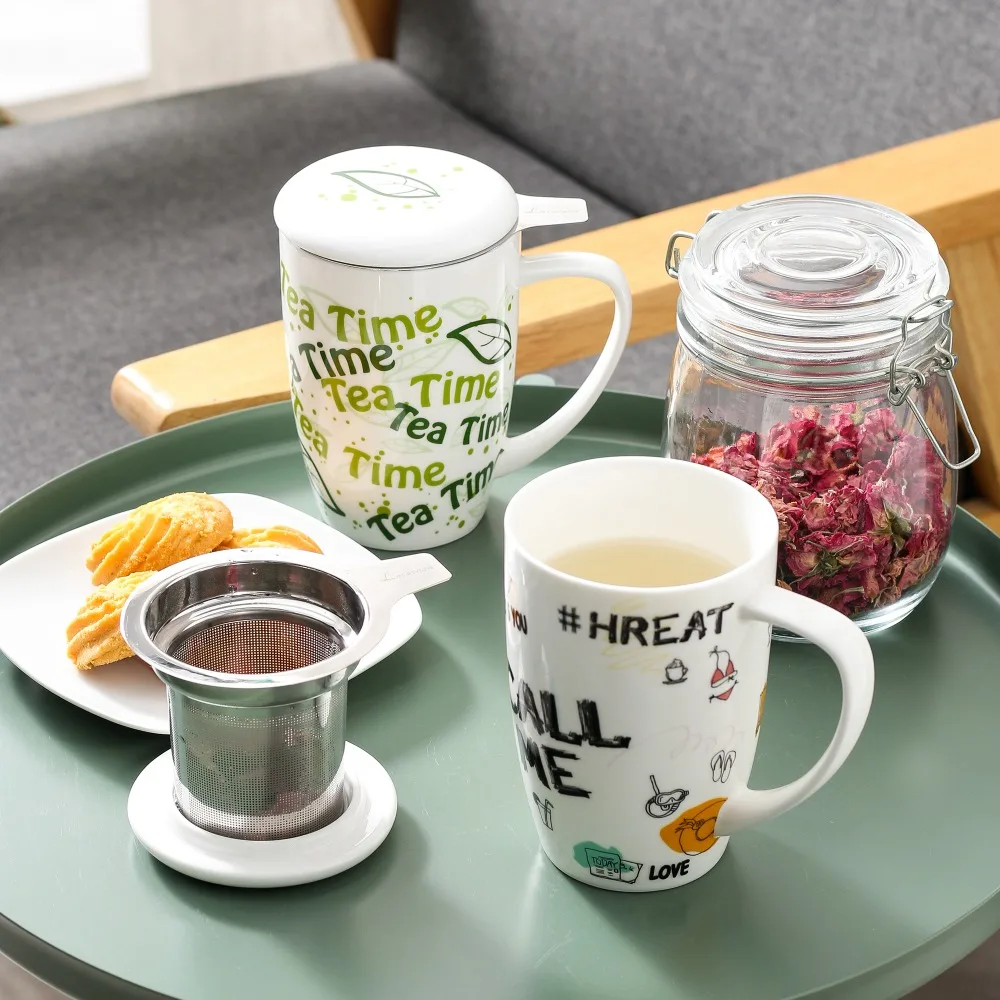 Простой и элегантный вид-Чайная кружка LOVECASA с крышкой отличается простым и элегантным видом, которая изготовлена из высокогорящей керамики, что позволяет ей быть термостойкой до 120C / 240F.